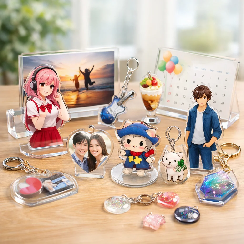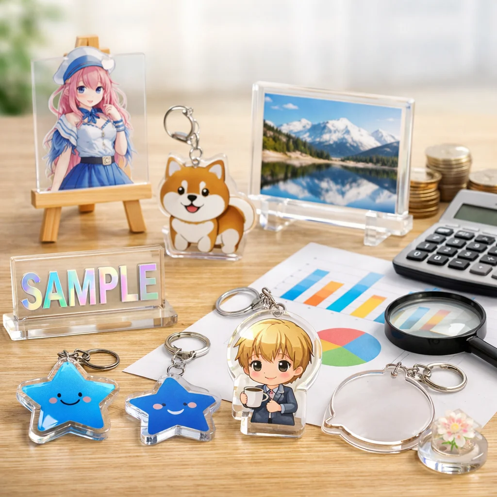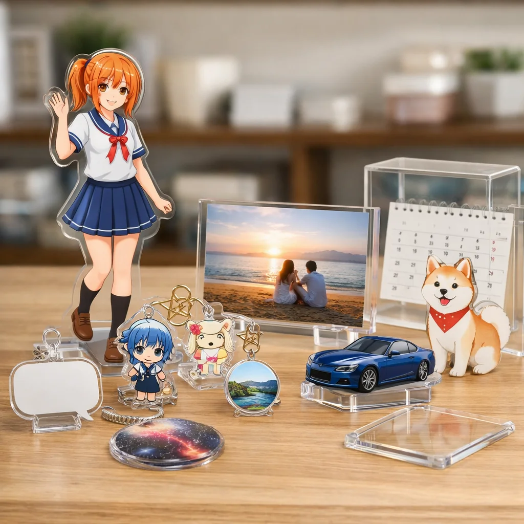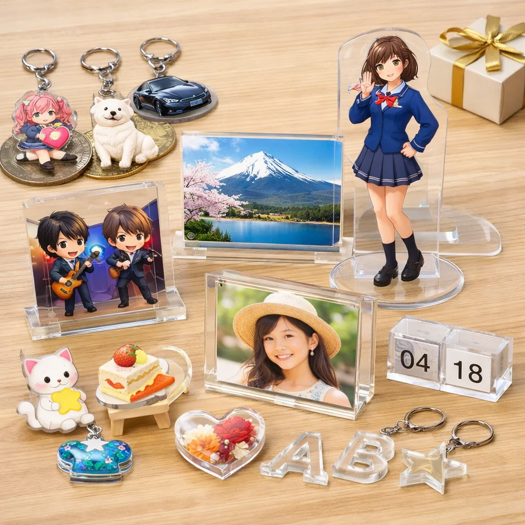 – カスタム:デザインの自由度が高く、オリジナルのアクリルグッズを制作できます。