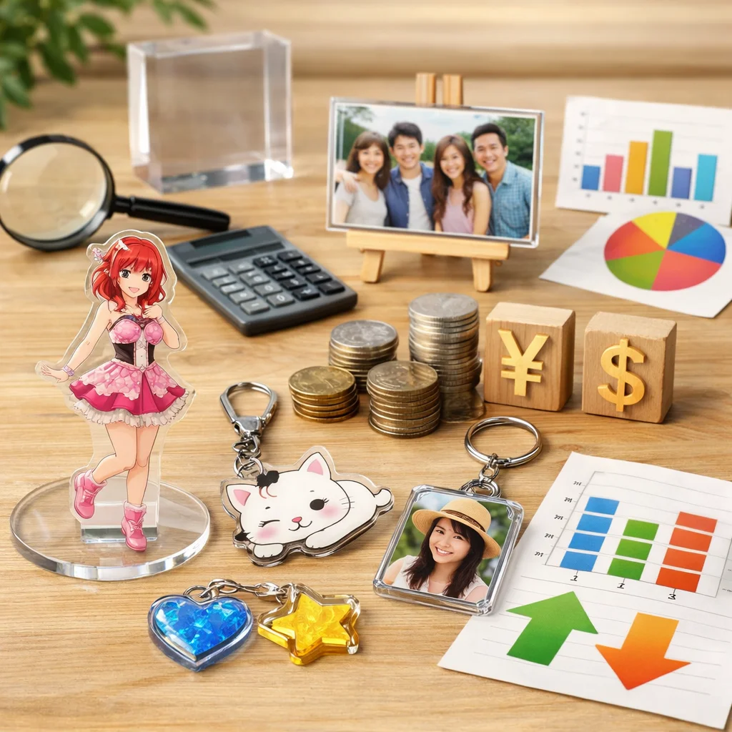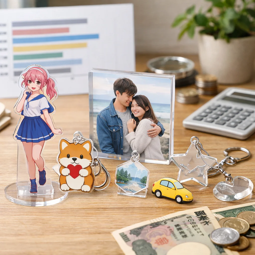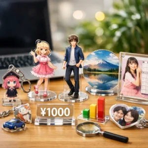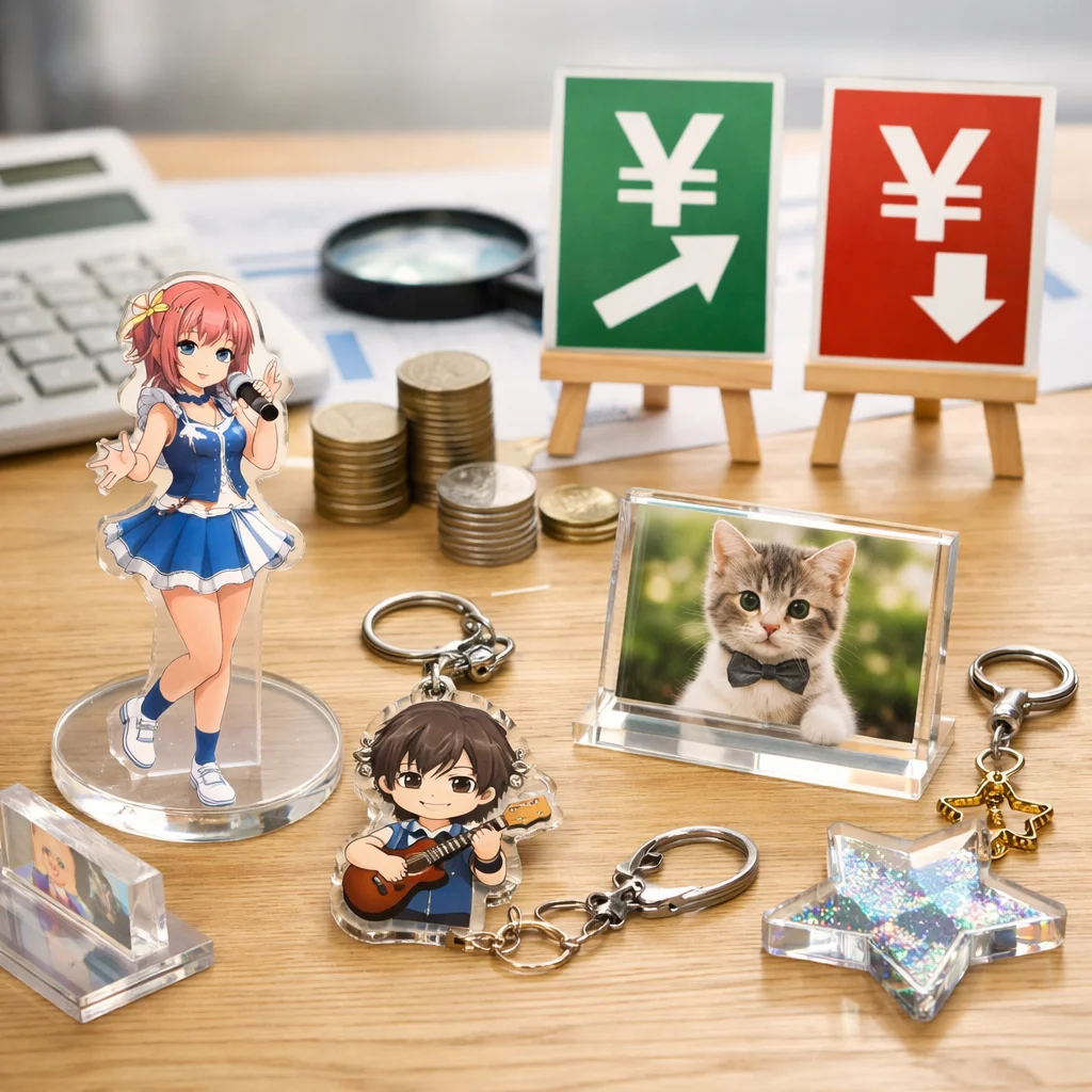 アクリルグッズの価格は、素材の厚みや透明度、特殊加工によって変動するため、購入の際はこれらの要素を考慮することが重要です。