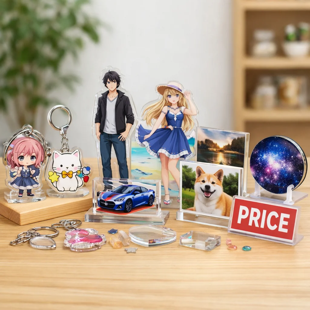アクリルグッズの価格は、使用されるアクリルの種類によって異なります。一般的に、キャストアクリルは押出アクリルよりも高価ですが、その分加工性や耐久性に優れています。この違いを理解することで、必要なアクリルグッズの仕様が見えてきます。