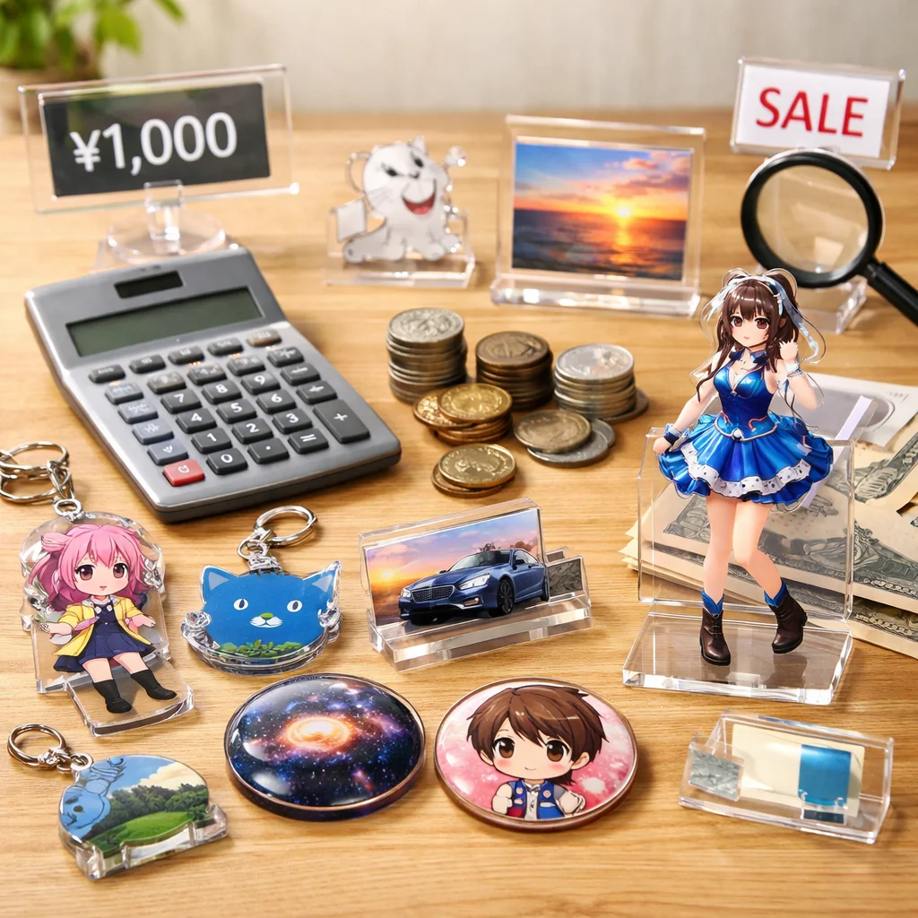 アクリルグッズの価格を比較する際は、単価、総額、コスパをチェックすると効果的です。これにより、適正な商品選びが可能になります。