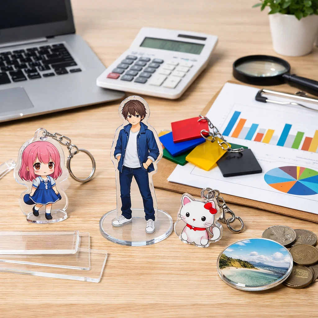 このように、アクリルグッズの価格は、サイズ、厚み、印刷、数量、梱包などの要因によって変動することをご理解いただけたでしょう。複数の業者から価格を比較すると、同じ商品でも異なる価格設定があることが分かるでしょう。これにより、最適な選択をするためのヒントを得ることができます。