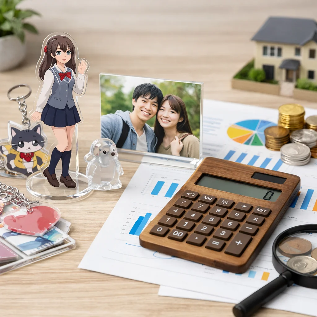 アクリルグッズの価格帯は低価格帯、中価格帯、高価格帯に分かれており、それぞれ異なる特徴とメリットがあります。低価格帯は数量を重視、中価格帯はバランス、そして高価格帯は高品質を求める方に適しています。選ぶ際は価格だけでなく、仕様や業者の信頼性も比較することが大切です。