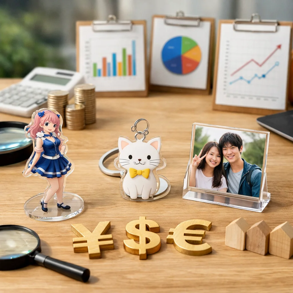 アクリルグッズの価格は、さまざまな要因によって変動します。特に、低価格帯、中価格帯、高価格帯のそれぞれには特徴があり、その価格帯によるメリットとデメリットを理解することで、より適切な選択が可能になります。ここでは、各価格帯の特徴と向いている人、注意点を詳しく解説します。