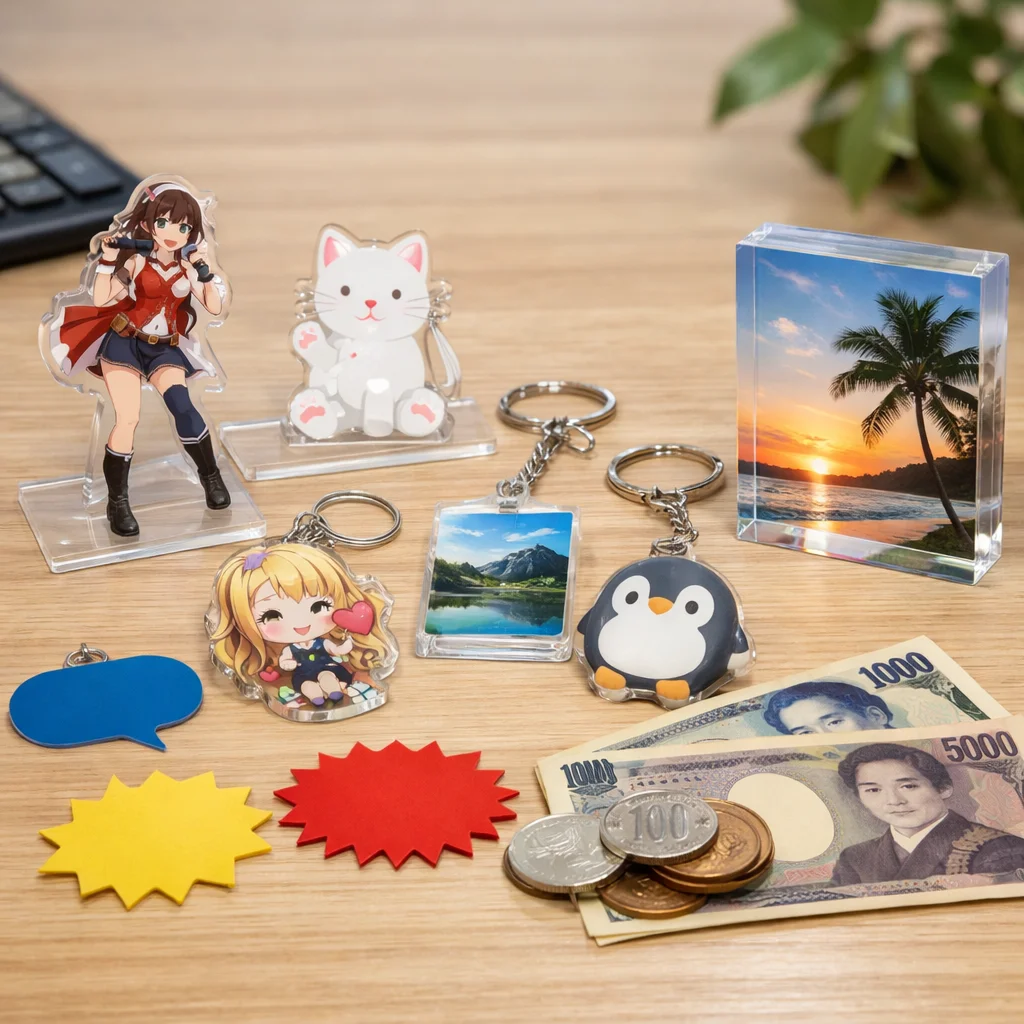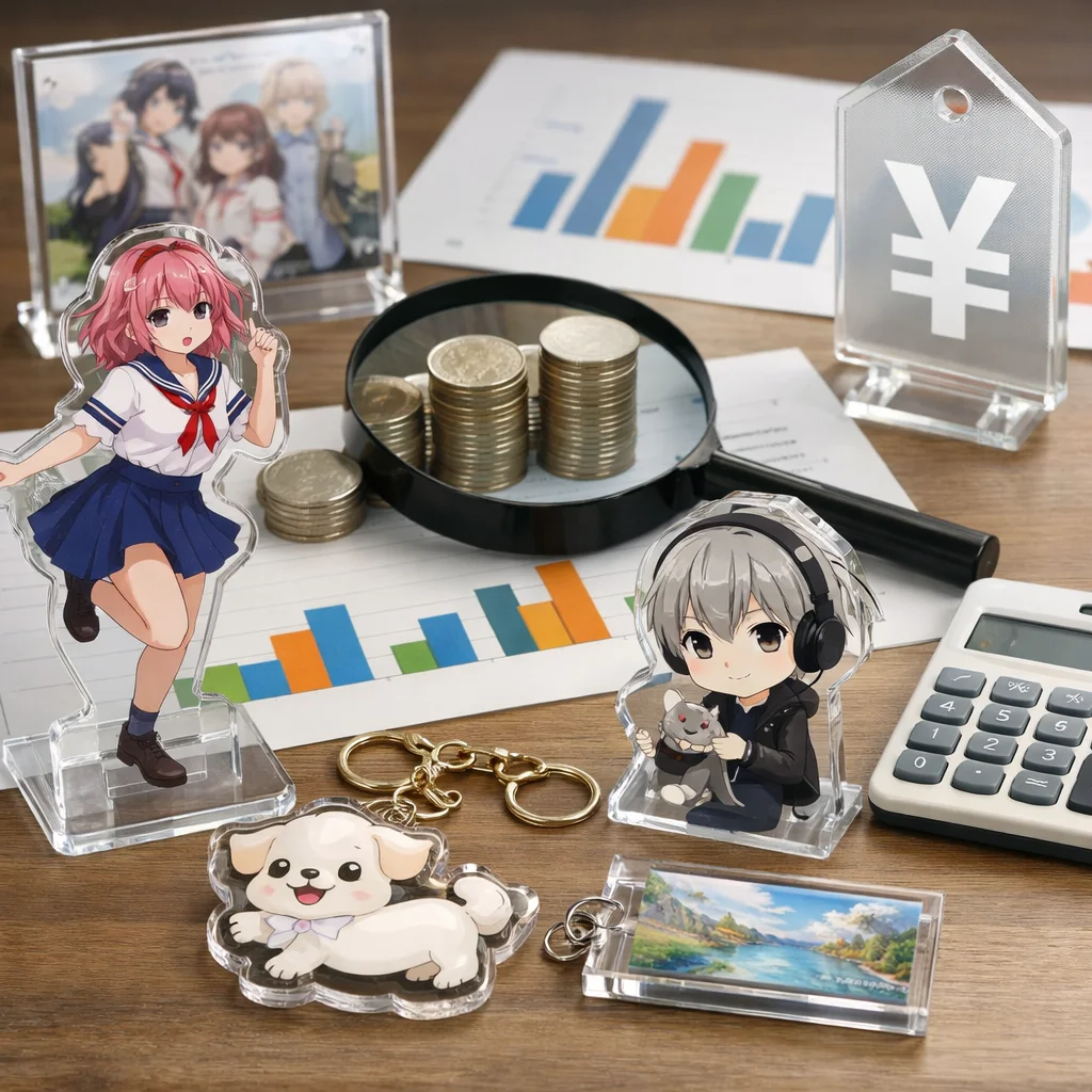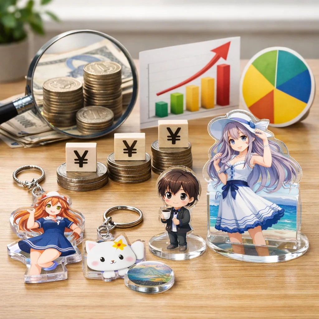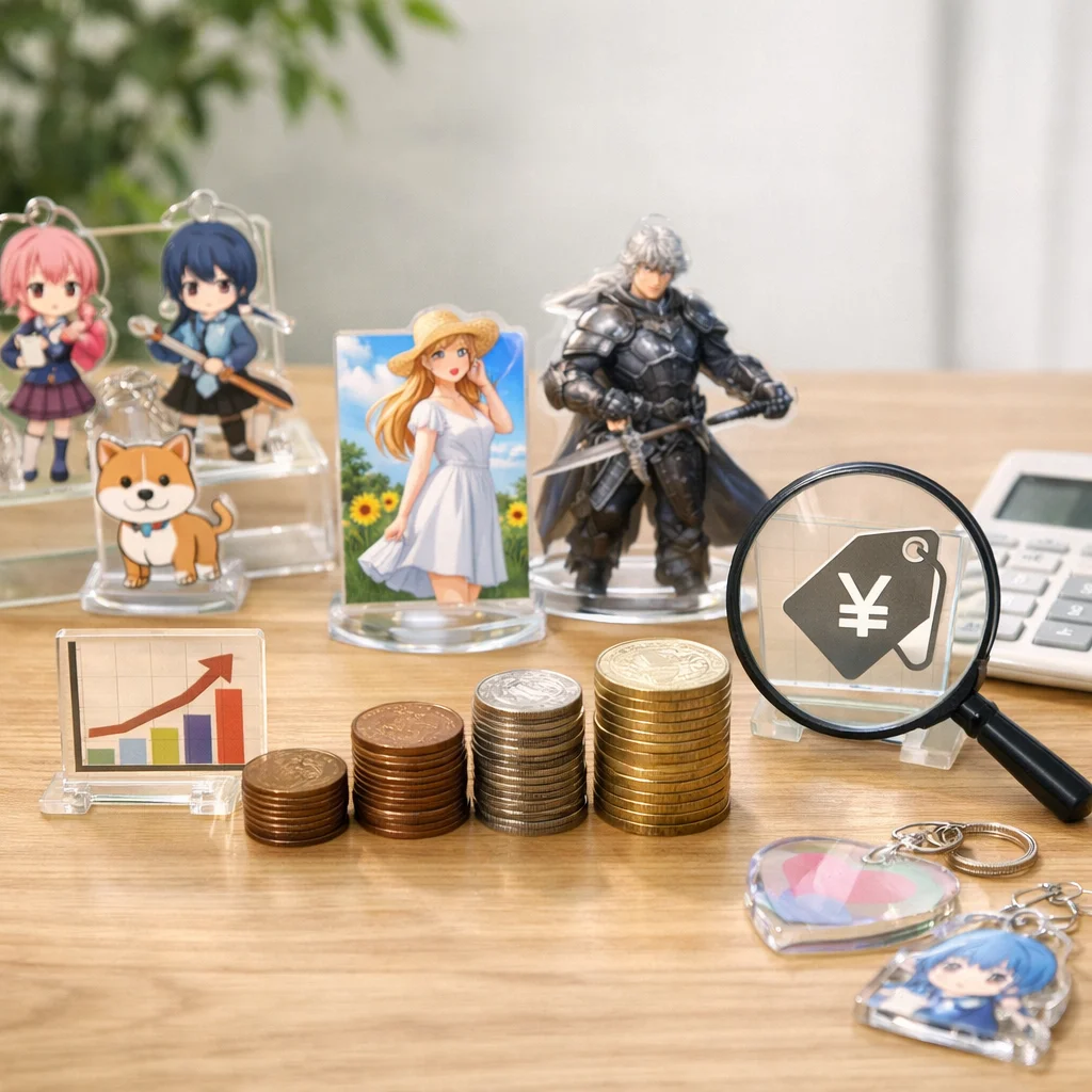 アクリルグッズの価格は、発注数量やデザイン、納期により変動します。複数業者から見積もりを取ることが、最適な選択をする上で重要です。コスト、品質、納期、リスクをしっかり比較しましょう。