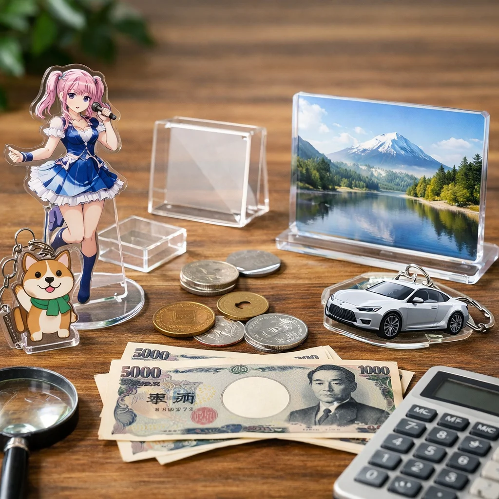これらの要因を理解することで、アクリルグッズの具体的な仕様を選定しやすくなるでしょう。自分の作りたいアクリルグッズの仕様に合わせて、最適な価格の目安を比較しながら選んでいくことが大切です。アクリルグッズの購入や制作を考える際は、これらの要因をぜひ参考にしてください。