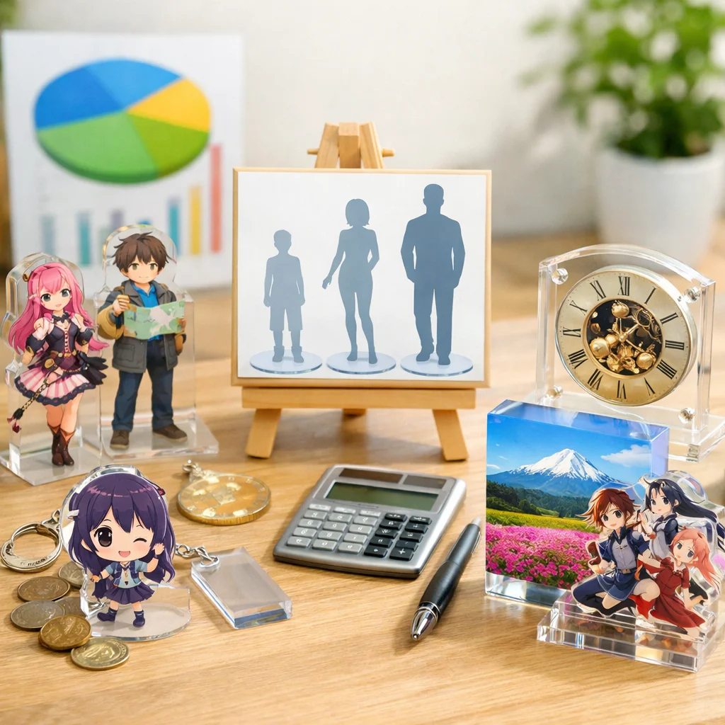 このように、アクリルグッズの価格は、年間を通じての需要変動や原材料費、加工方法、そして各業者の納期表やキャンペーン情報など、多くの要因によって影響を受けます。最新の価格動向を把握し、最適なタイミングでの購入や制作を検討することが重要です。