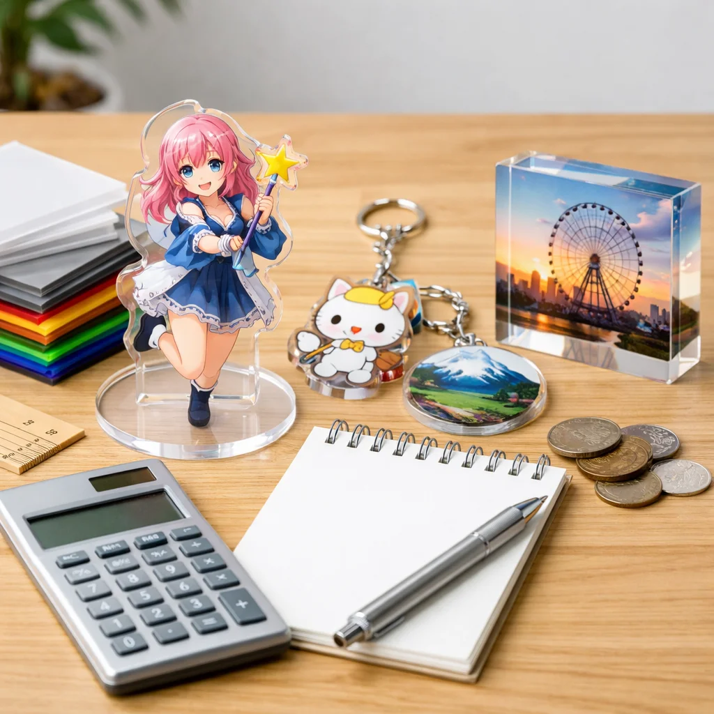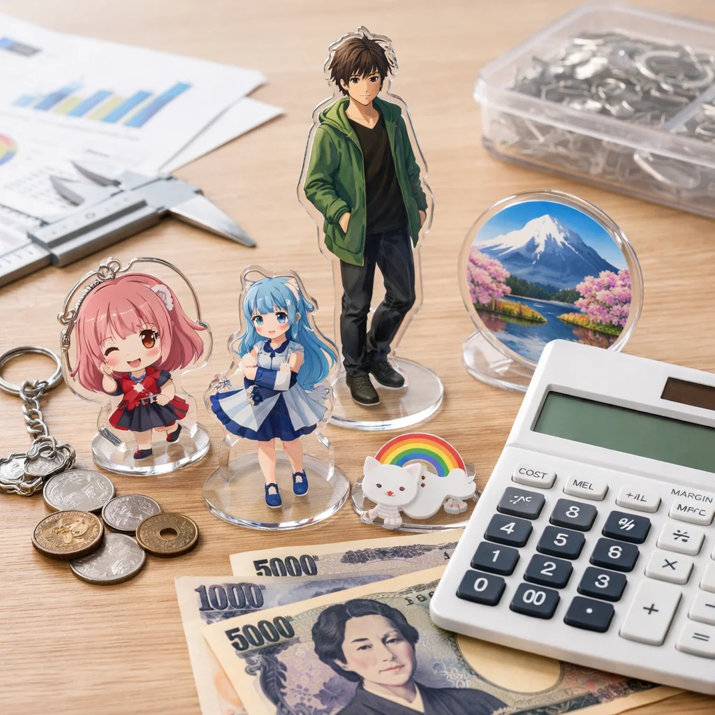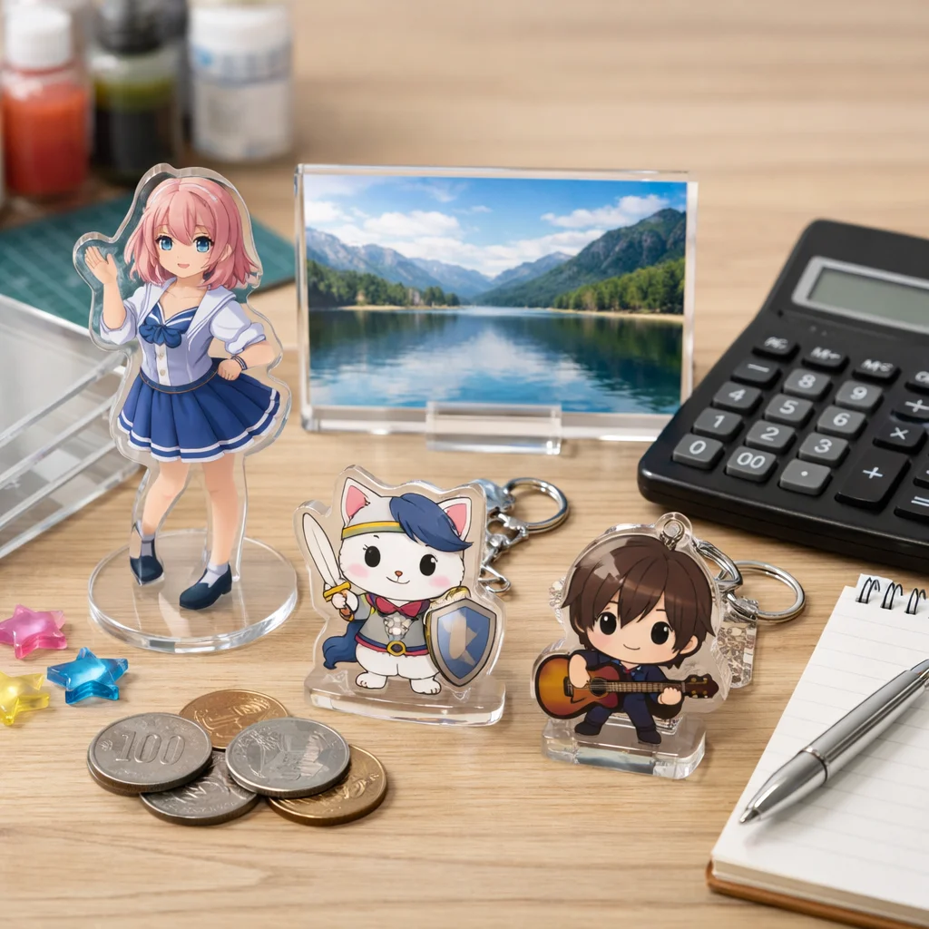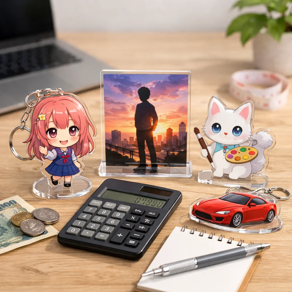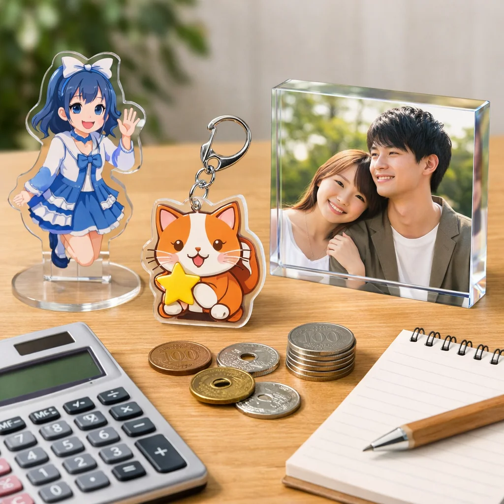 アクリルグッズの価格は、印刷やカット精度、傷対策などの品質要素により異なります。