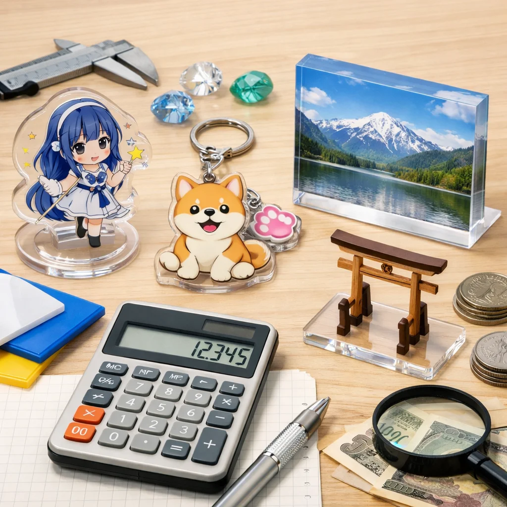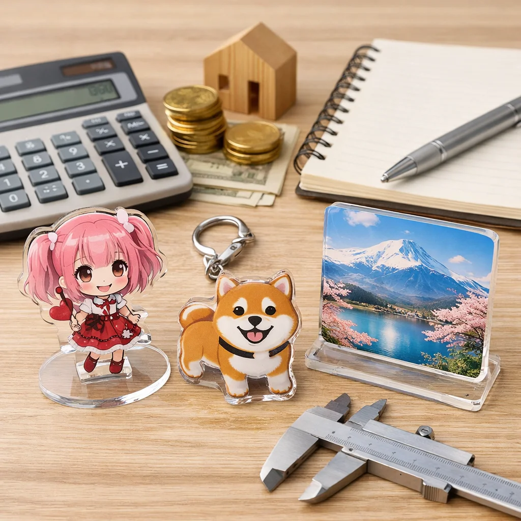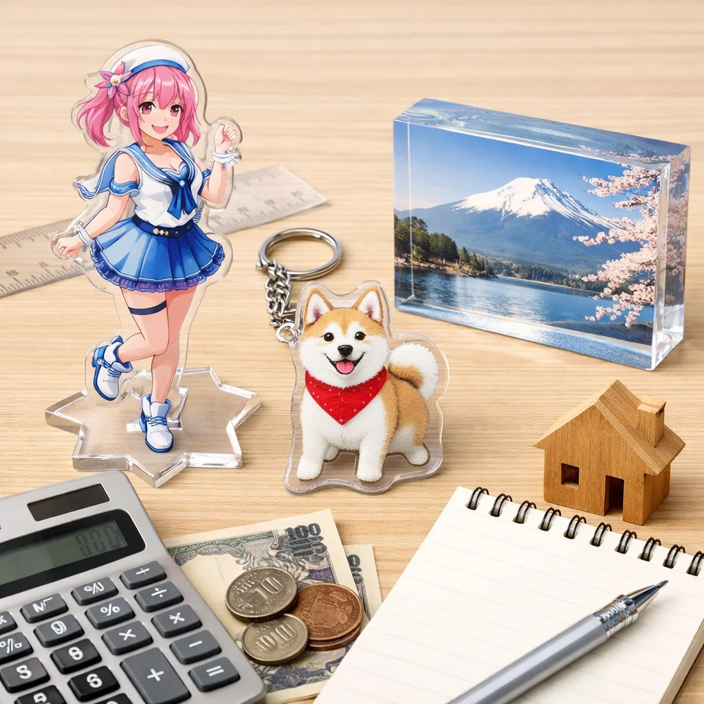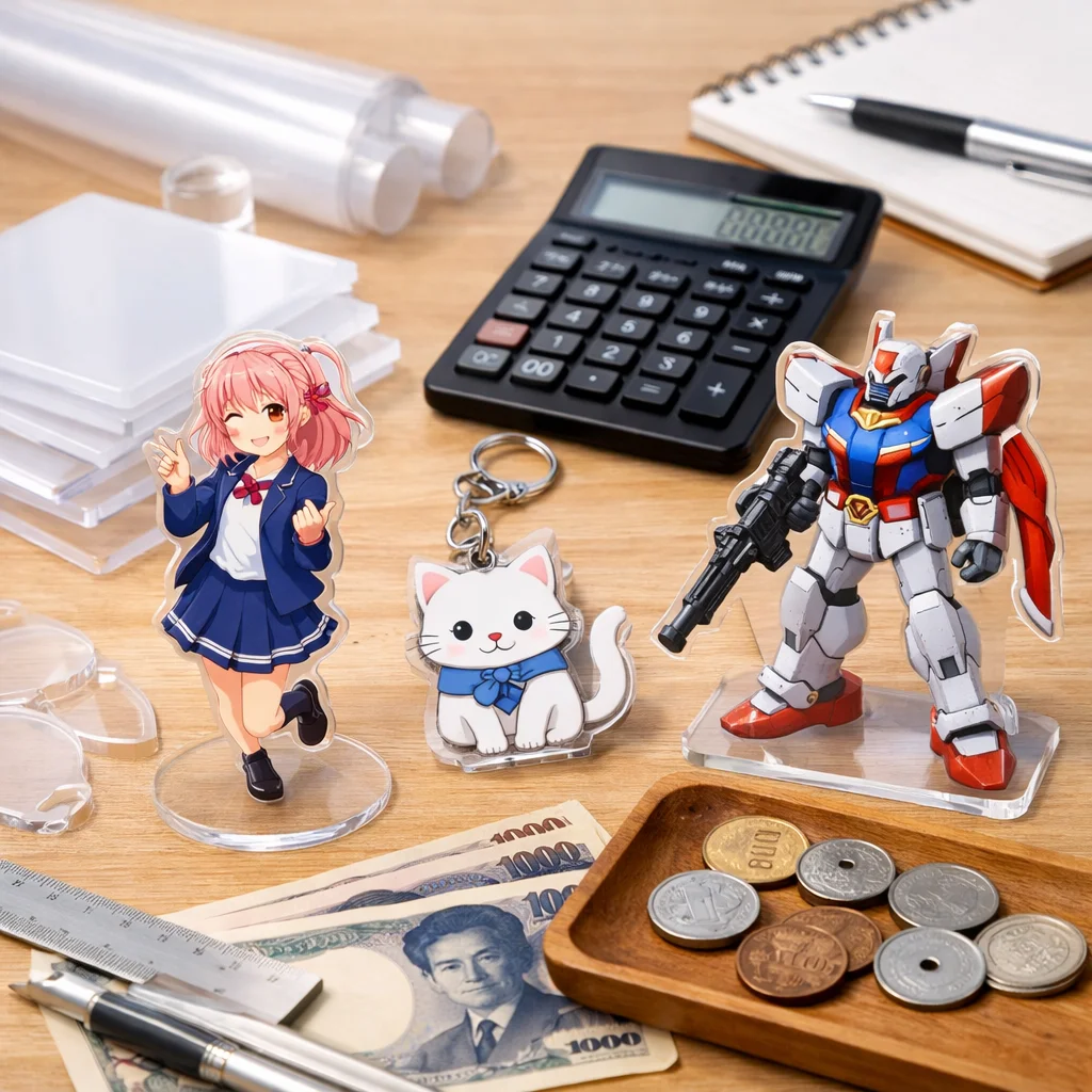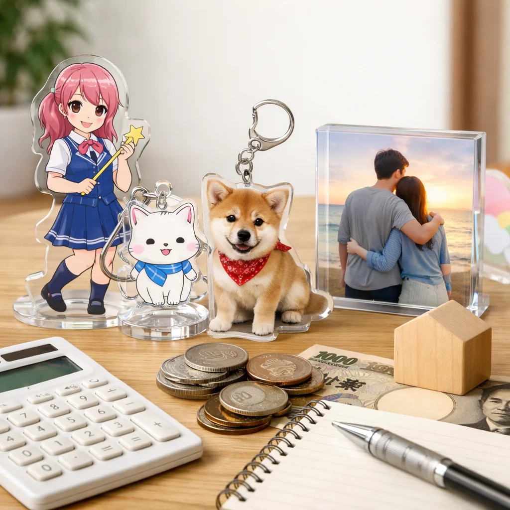 アクリルグッズの価格は、印刷やカット精度、傷対策などの品質要素により異なります。