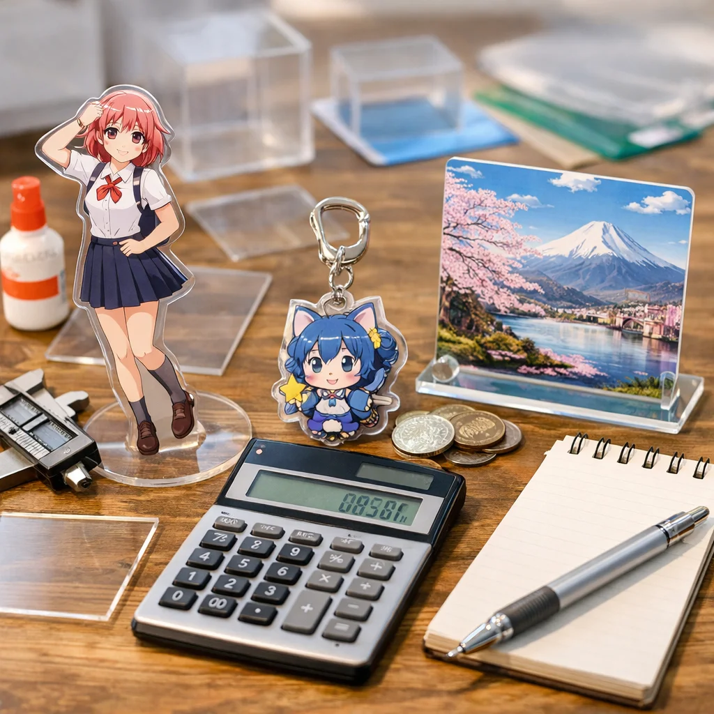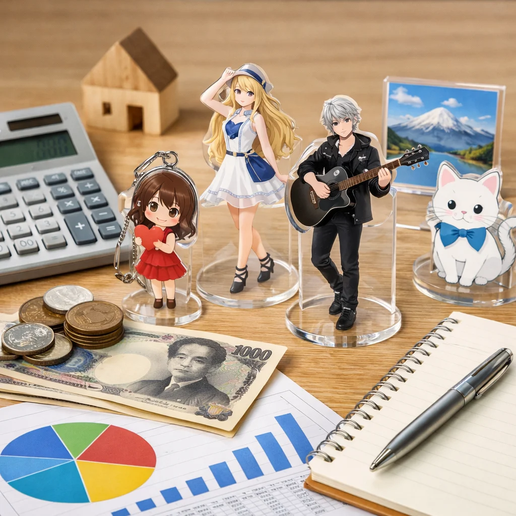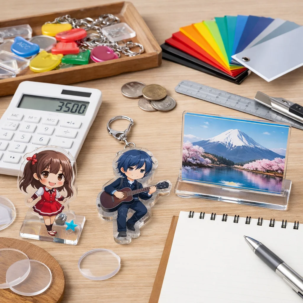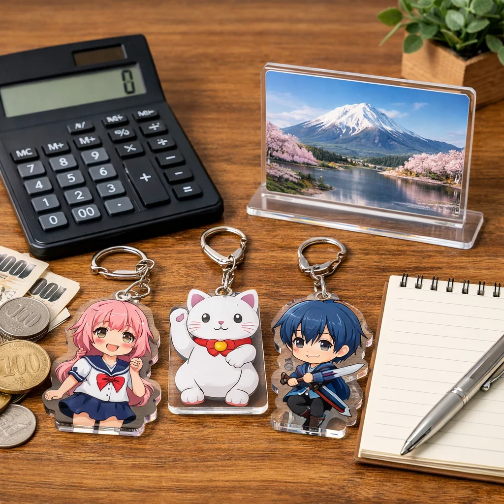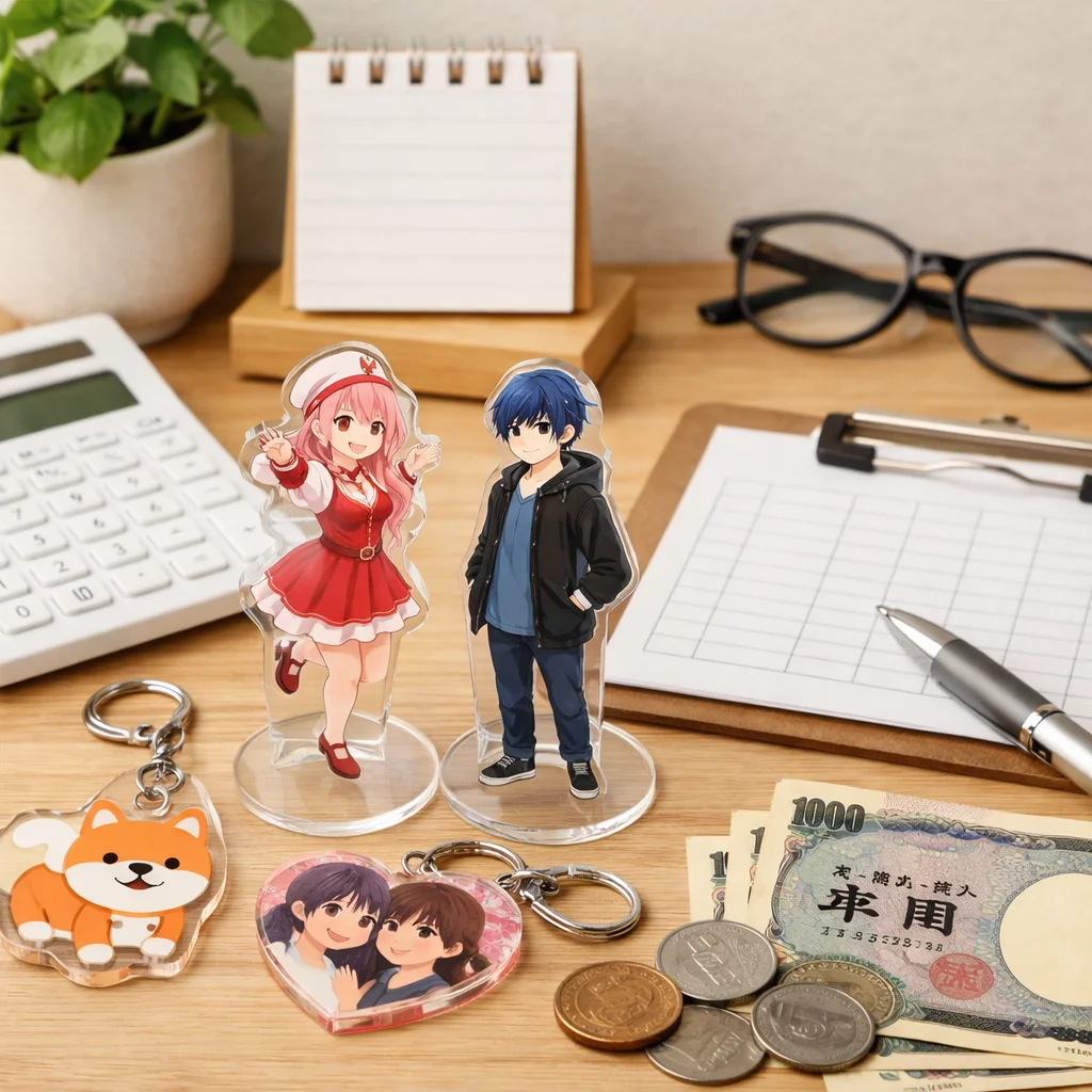 アクリルグッズの価格は、印刷やカット精度、傷対策などの品質要素により異なります。