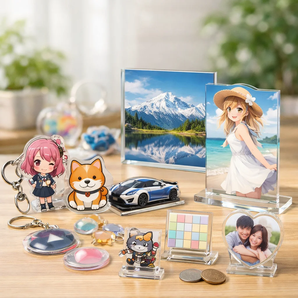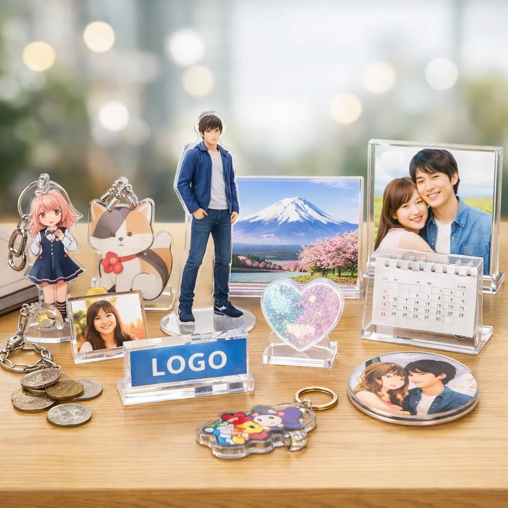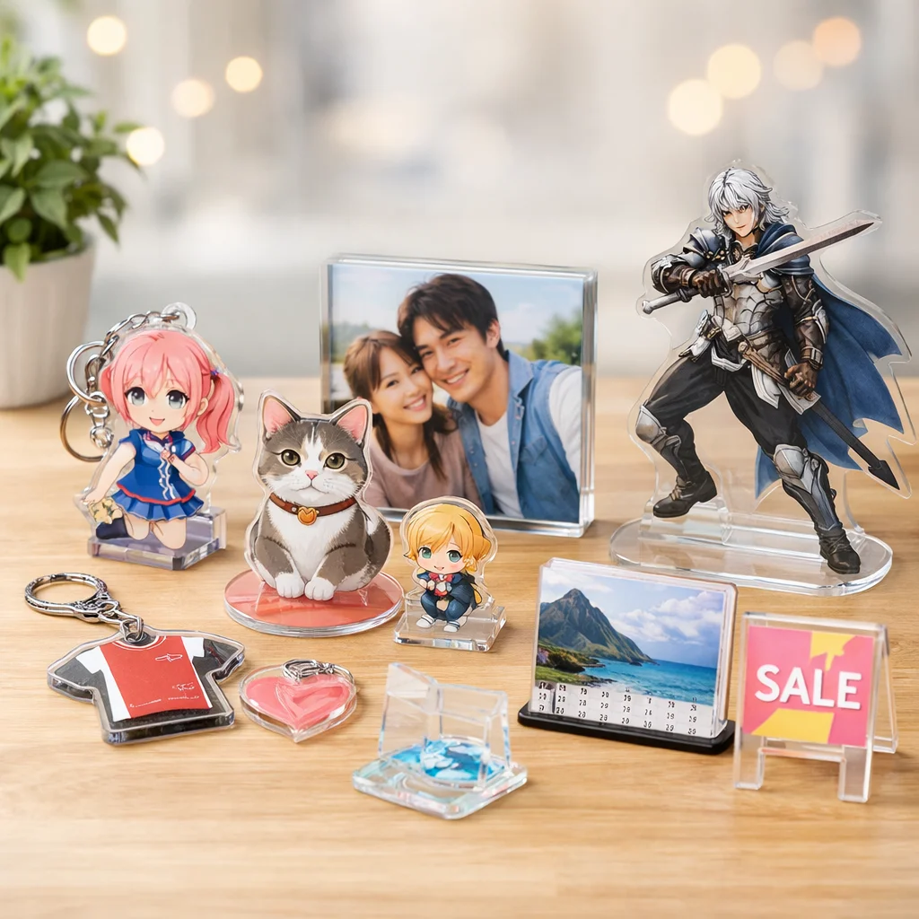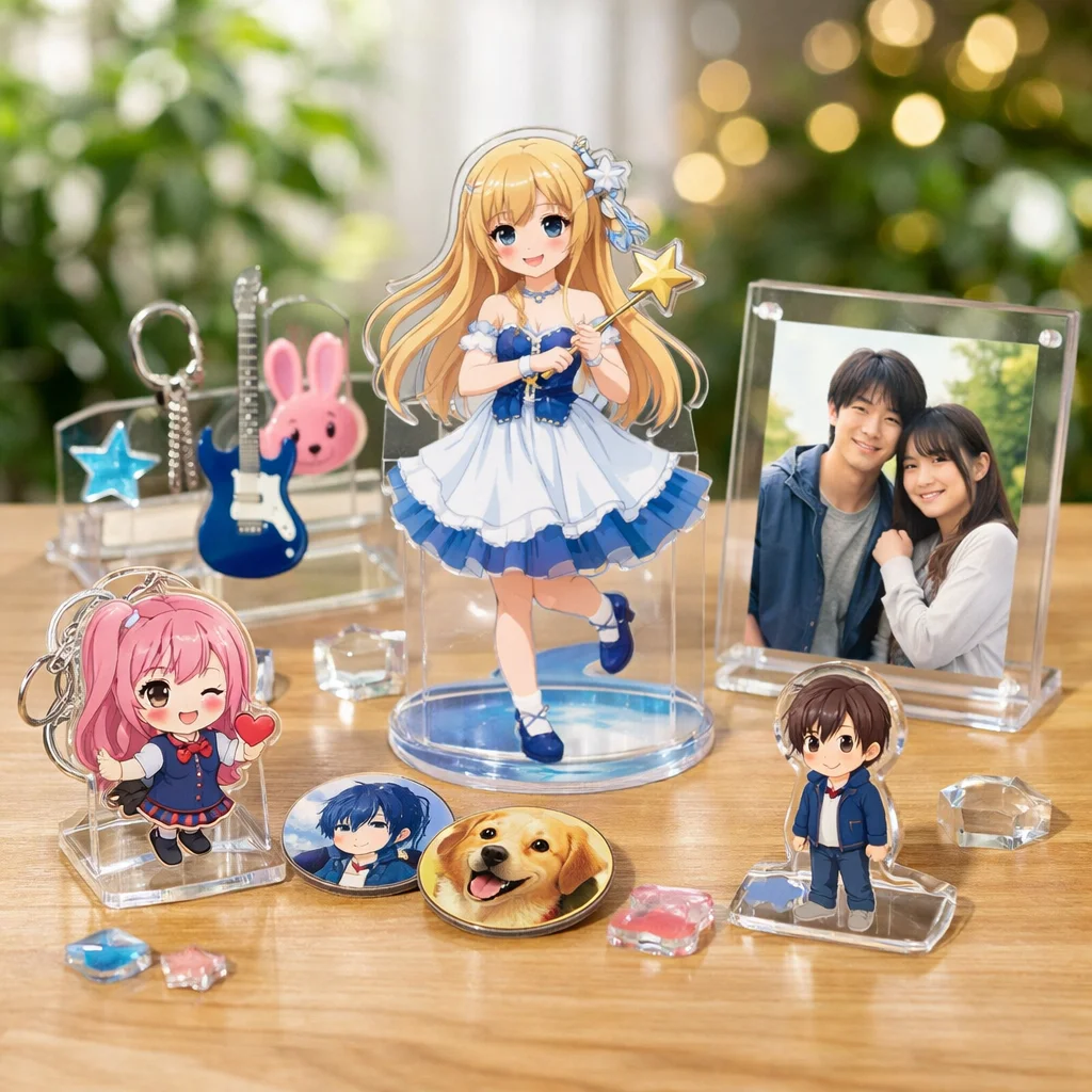 このようにアクリルグッズは多様な用途があり、それぞれのアイテムには一般的なサイズ例も存在します。これにより、利用者は自分のニーズに合ったアクリルグッズを手軽に選ぶことができ、ますます人気が高まっています。