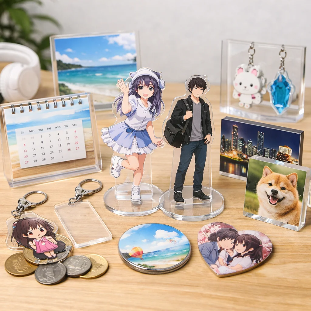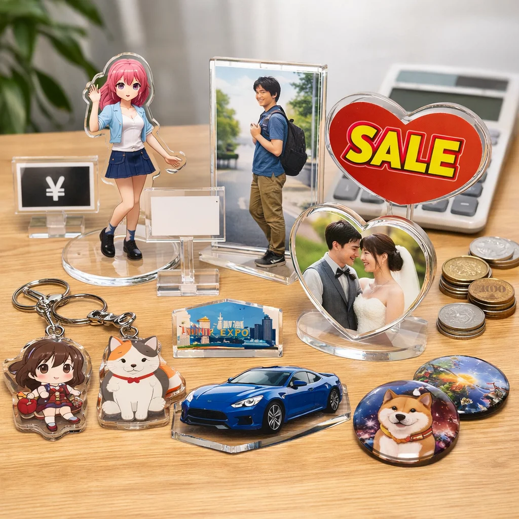 デザインやサイズによるアクリルグッズの価格は、さまざまな要因によって変動します。特に、サイズや厚み、印刷方法、加工の種類、付属品などが価格に大きな影響を与えます。このため、購入を検討する際はそれぞれの要素をしっかり理解することが大切です。