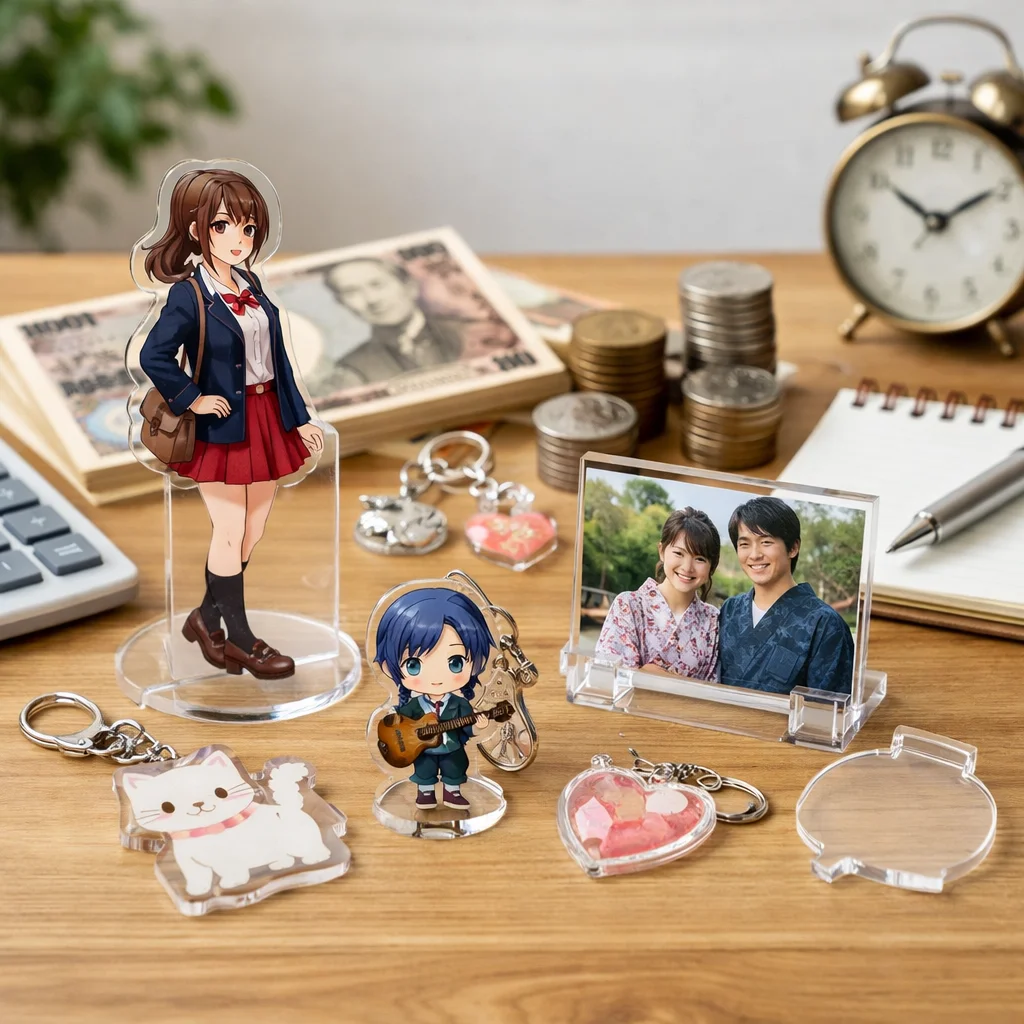 このように、アクリルグッズの価格は、サイズや厚み、印刷の内容、使用される金具、またキャラクターのライセンスなど、多くの要因が絡み合って決まります。これらの知識を持つことで、より納得のいく購入ができるでしょう。