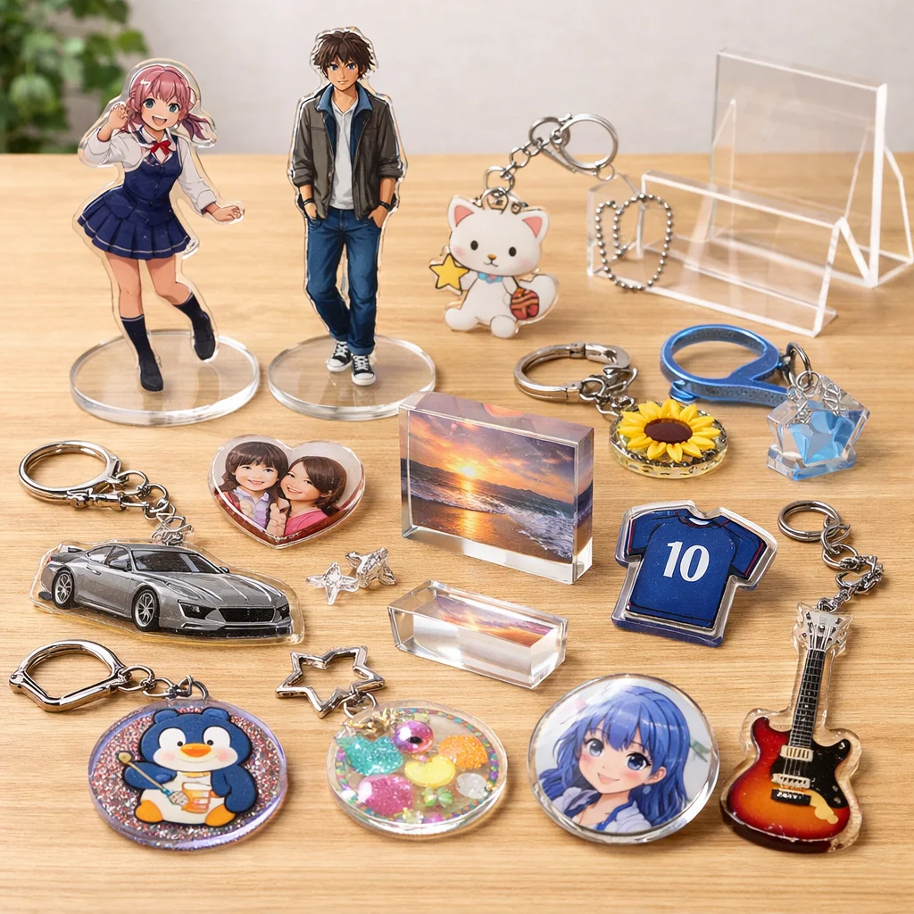 アクリルグッズの相場は、アイテムの種類やサイズ、厚みによって異なります。新品公式、中古、同人・ハンドメイドといった各市場で価格が設定されており、人気キャラクターとのコラボ品は特に高価格です。自分に合ったアクリルグッズを選ぶ際は、最新の相場を確認することが重要です。
