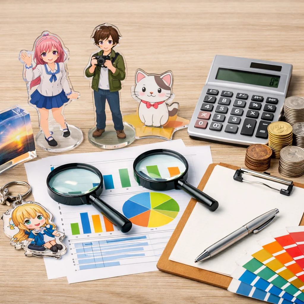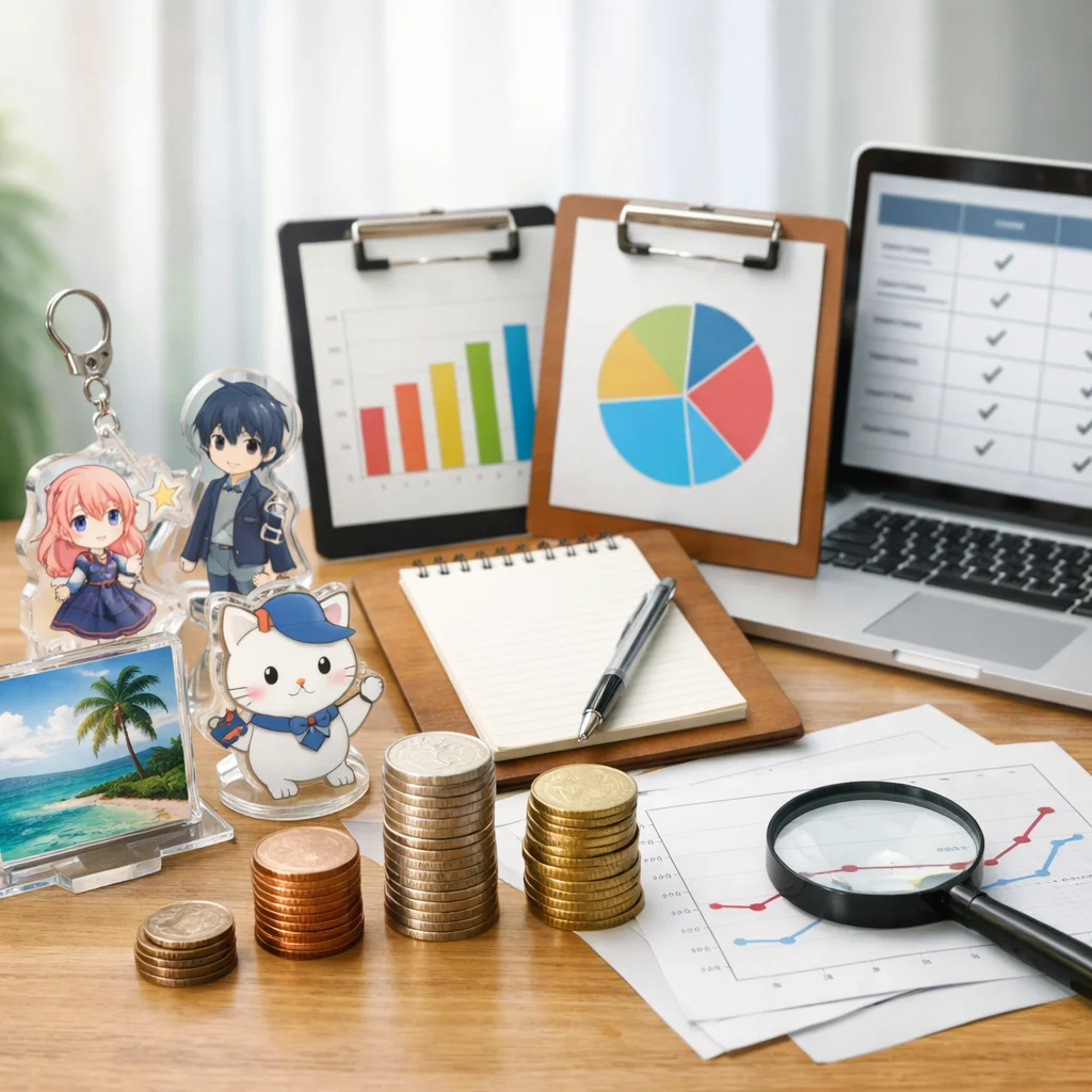 アクリルグッズの見積もりを比較する際は、価格だけでなく、品質や納期、アフターサービスなど総合的な要素を考慮することが重要です。適切な業者選びが、満足のいくアクリルグッズ制作につながります。