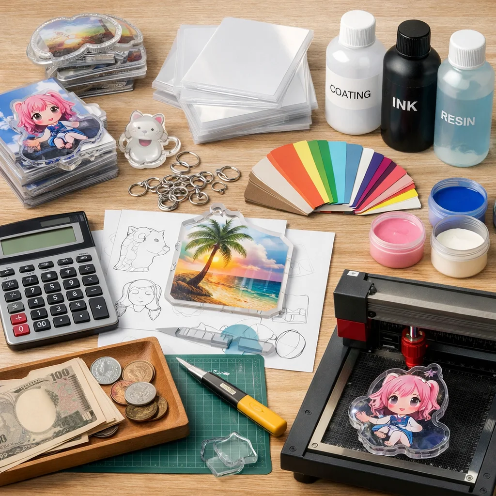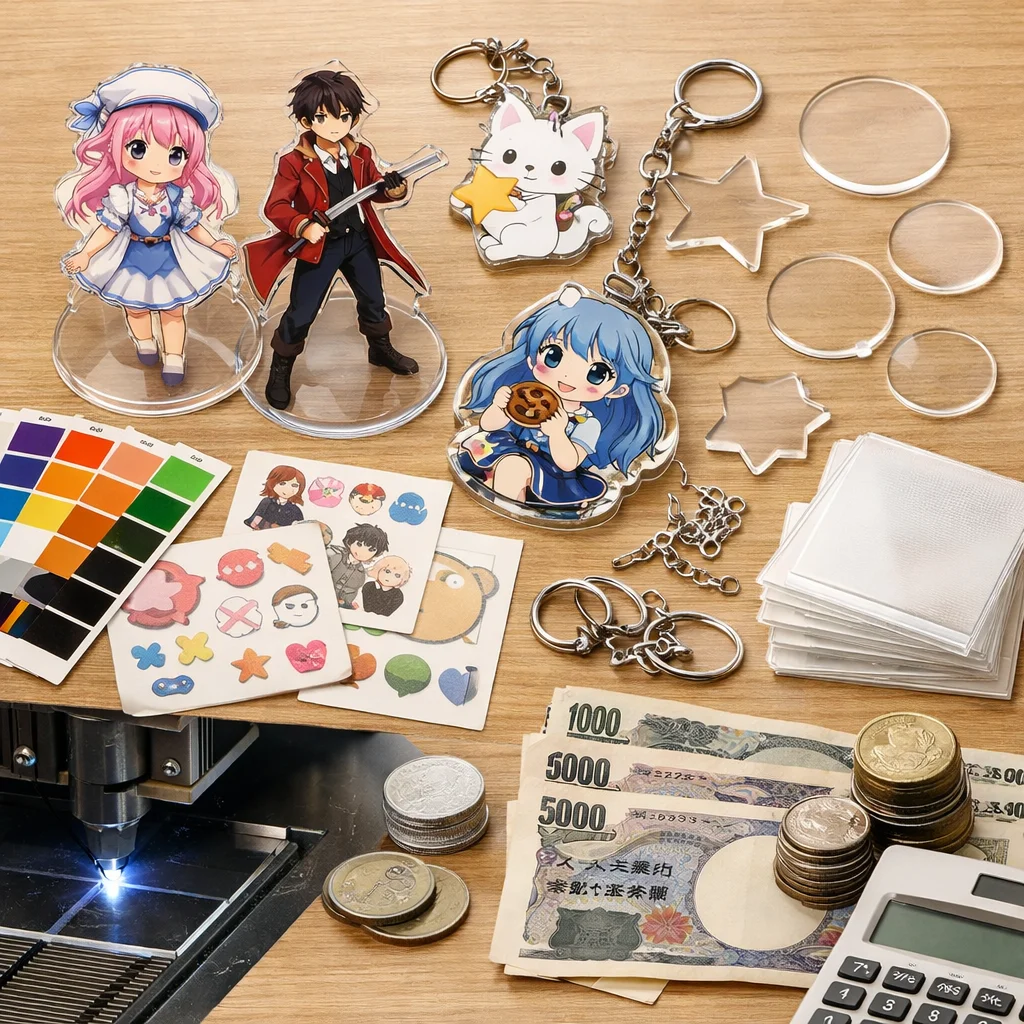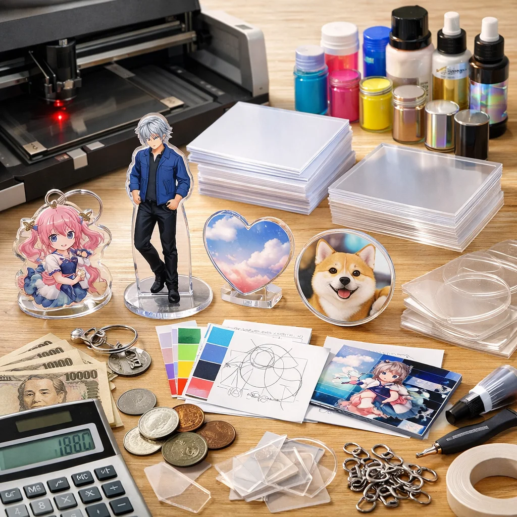 アクリルグッズの制作にかかる費用は、主に以下の内訳で構成されます。