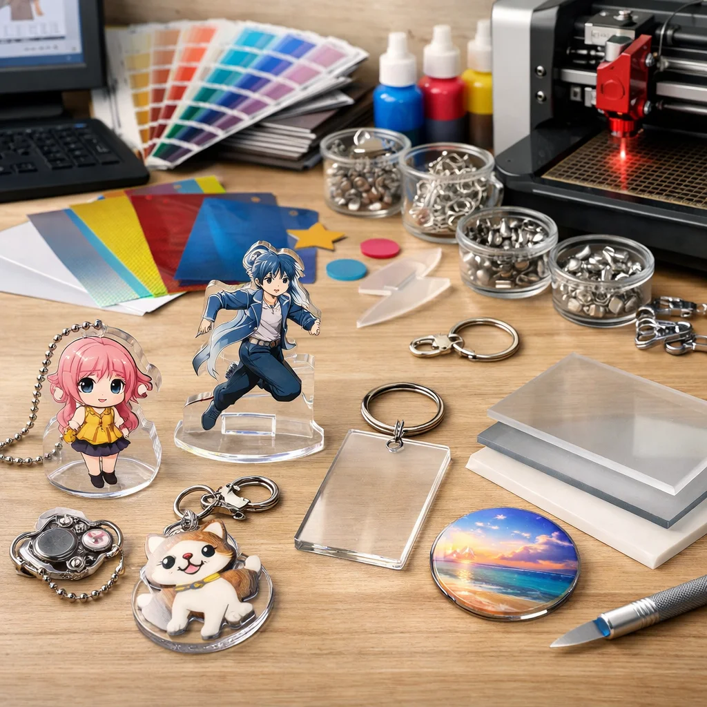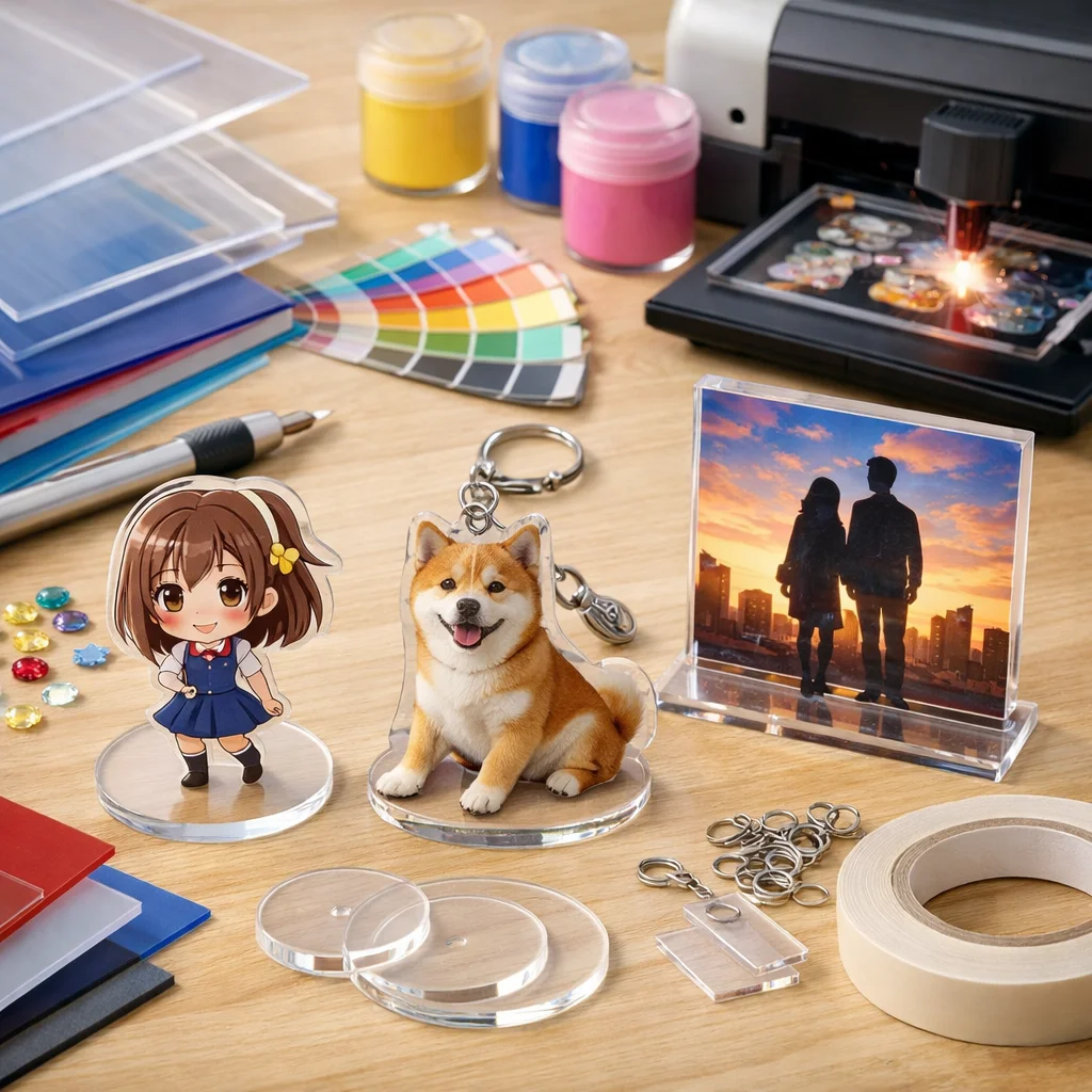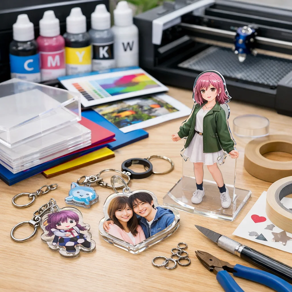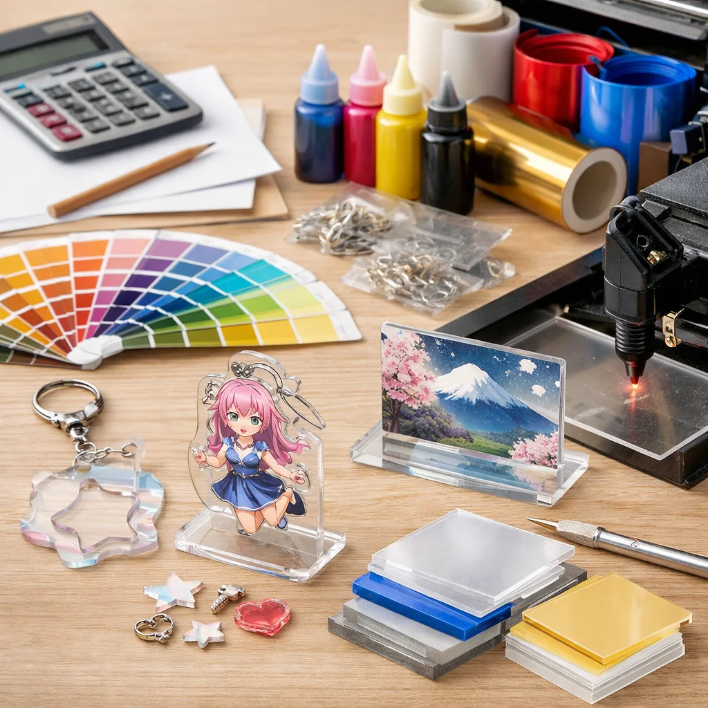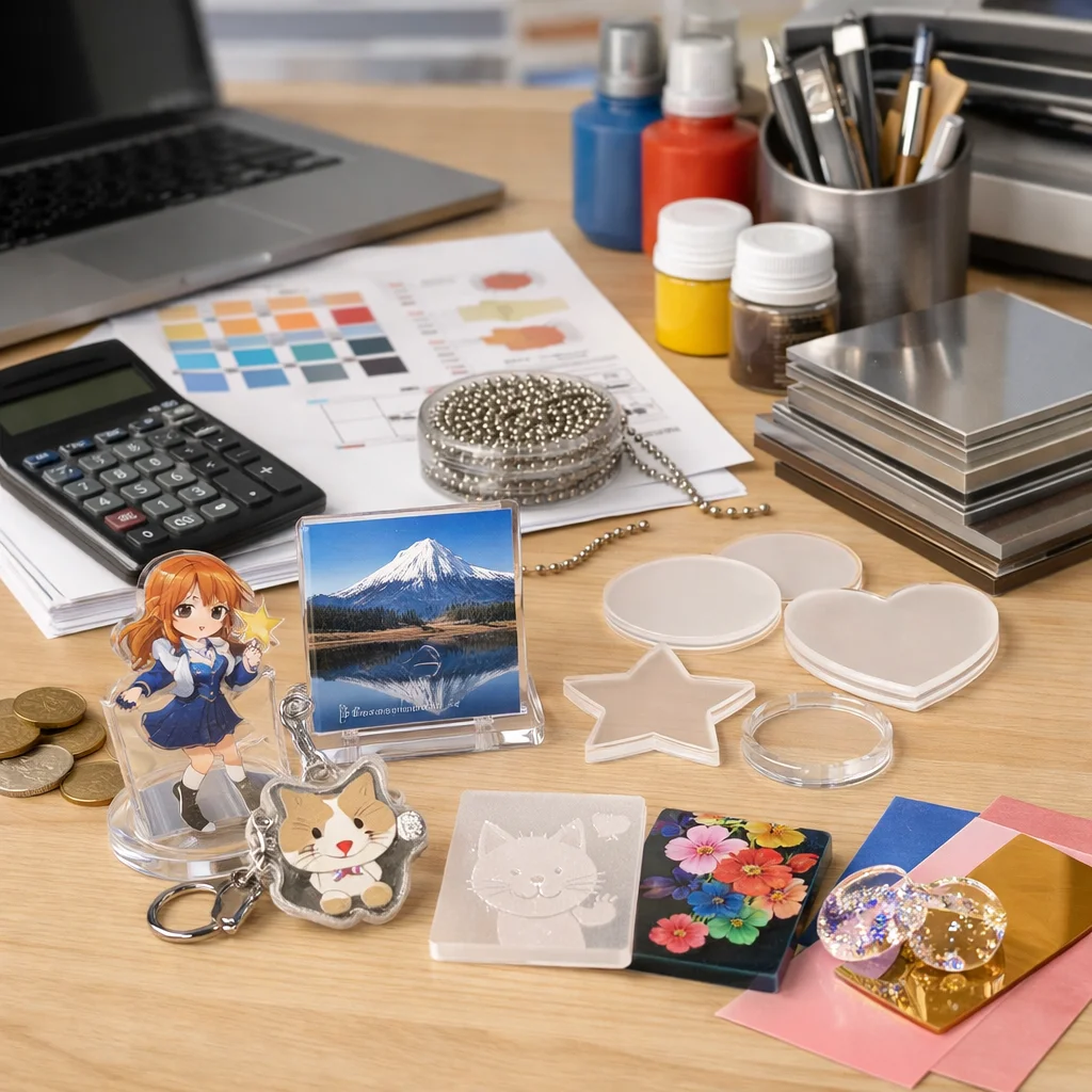 アクリルグッズの費用は市場の動向、特に短納期化やオンデマンド生産、フルカラーUV印刷、特殊フィルムの流行に影響されます。効率的な加工選択がコストダウンの鍵です。