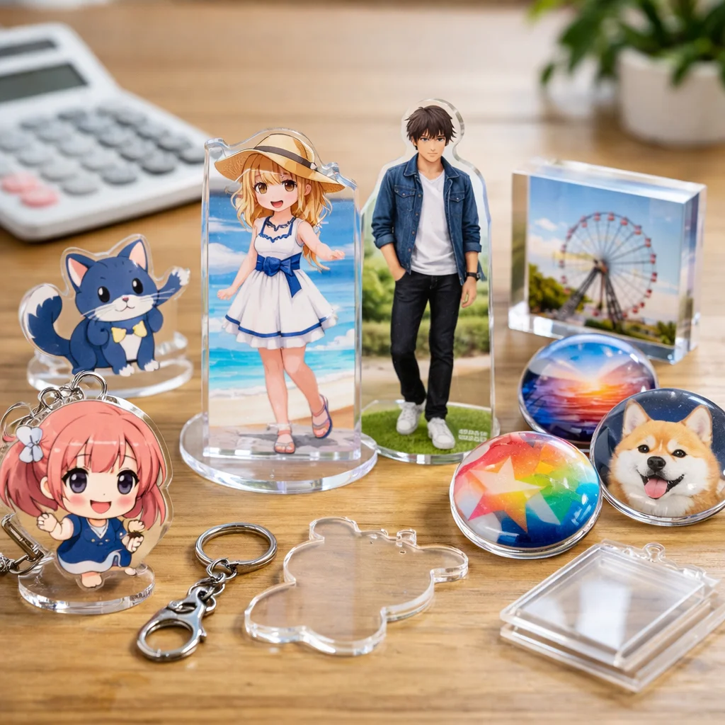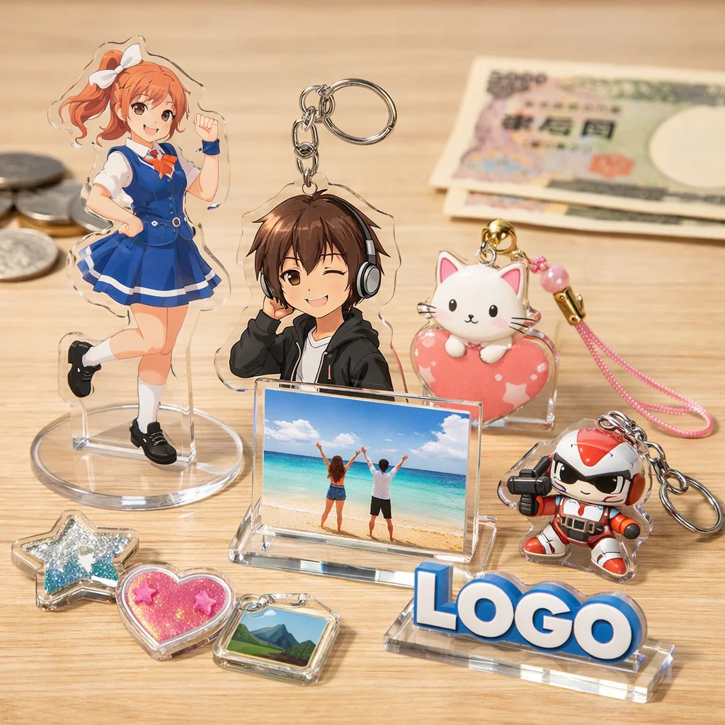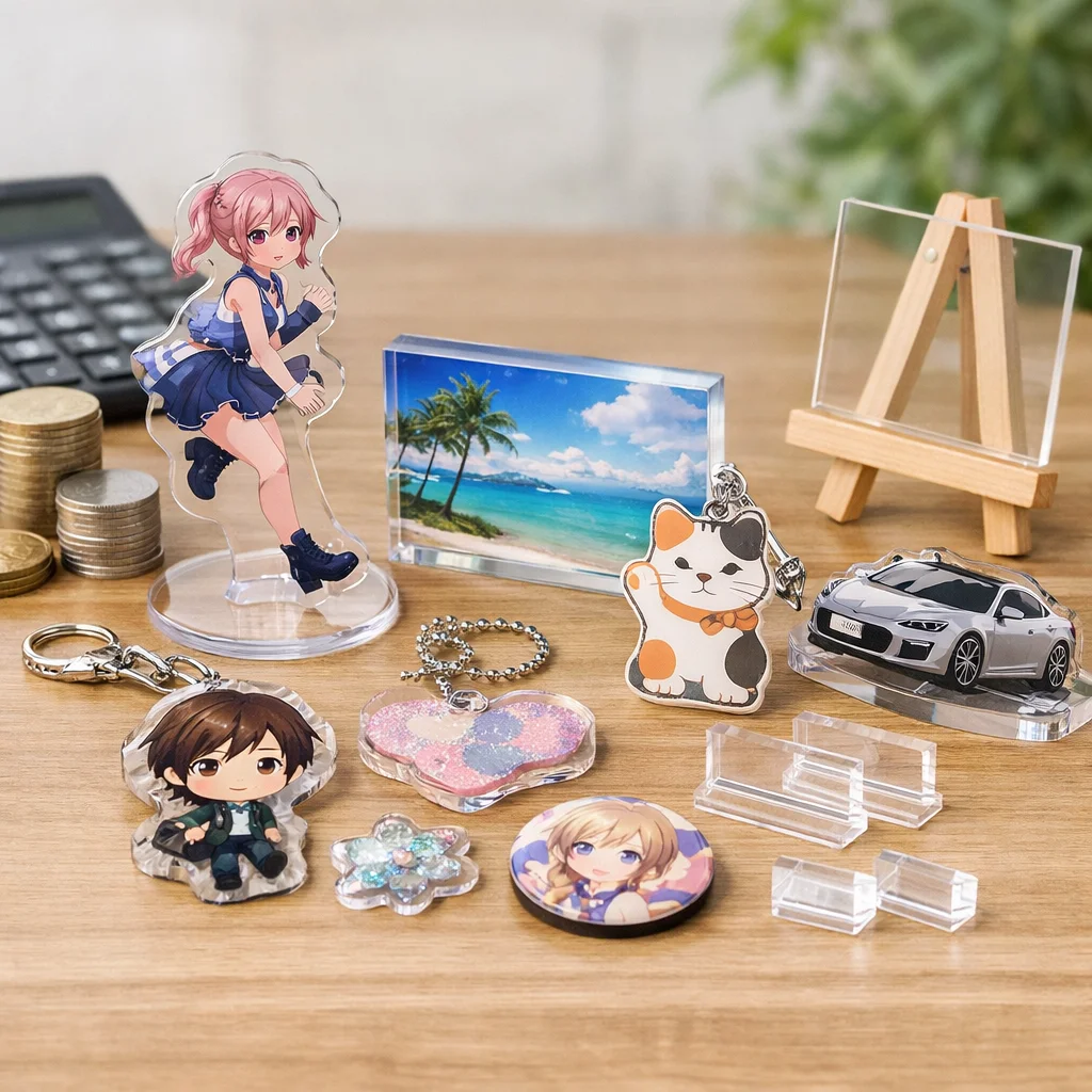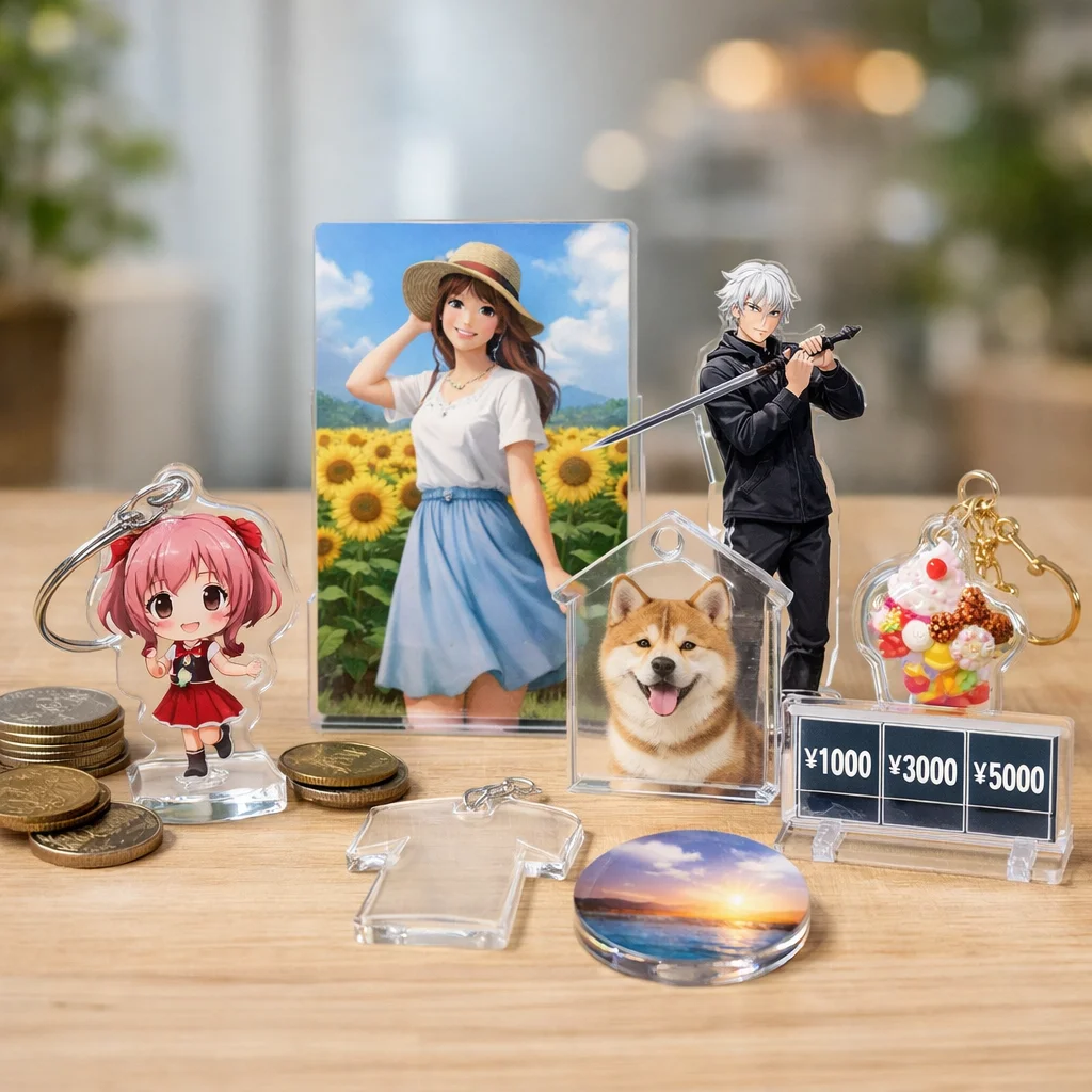 アクリルグッズは、その多様な種類とデザイン性から、個人や企業のオリジナル商品として人気を集めています。しかし、アクリルグッズの費用は、種類や仕様、注文数量によって大きく変動します。以下に、代表的なアクリルグッズの種類別費用相場を整理し、価格に影響を与える主な要因を解説します。