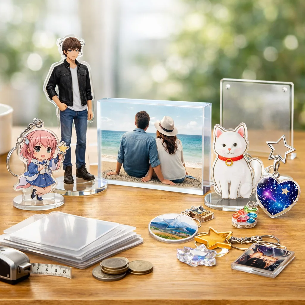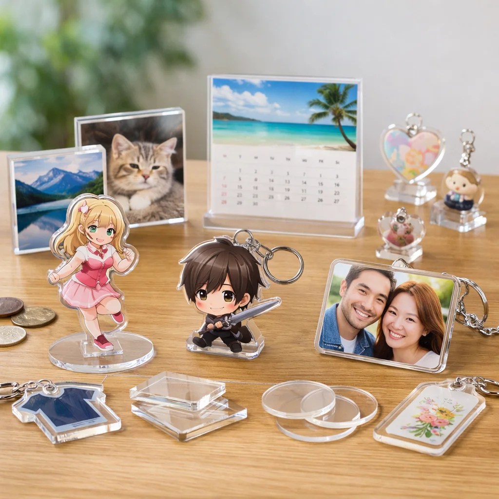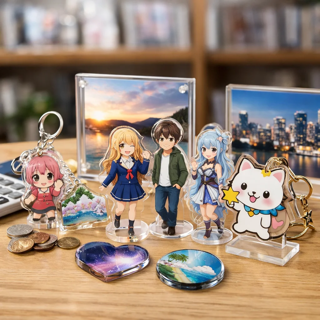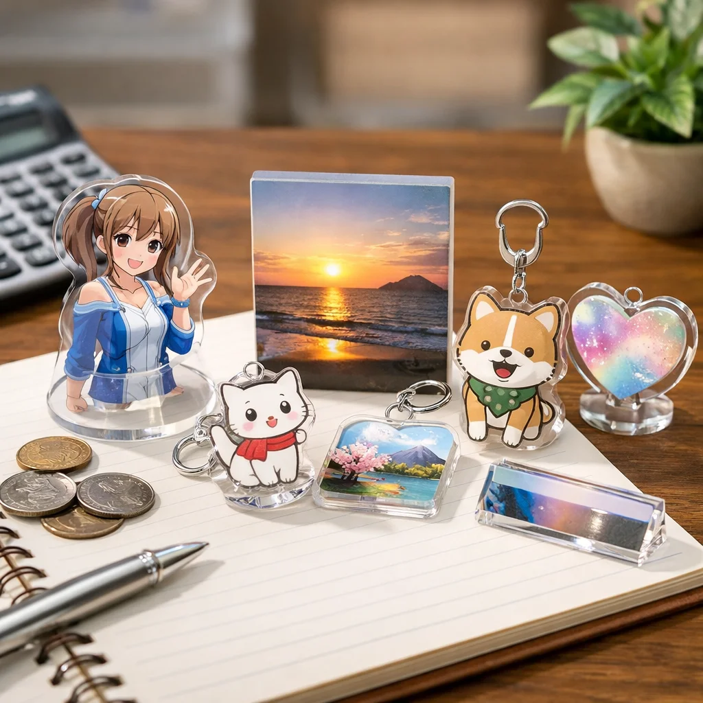 アクリルグッズは、その多様な種類とデザイン性から、個人や企業のオリジナル商品として人気を集めています。しかし、アクリルグッズの費用は、種類や仕様、注文数量によって大きく変動します。以下に、代表的なアクリルグッズの種類別費用相場を整理し、価格に影響を与える主な要因を解説します。