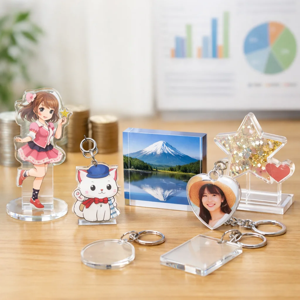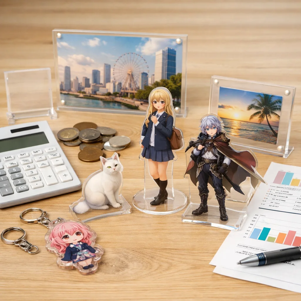 アクリルグッズの価格設定は、消費者が重視する価値(透明度や印刷の発色など)に依存しています。購入時の決定要因を理解し、原価を見直すことで、より魅力的な商品を提供できます。