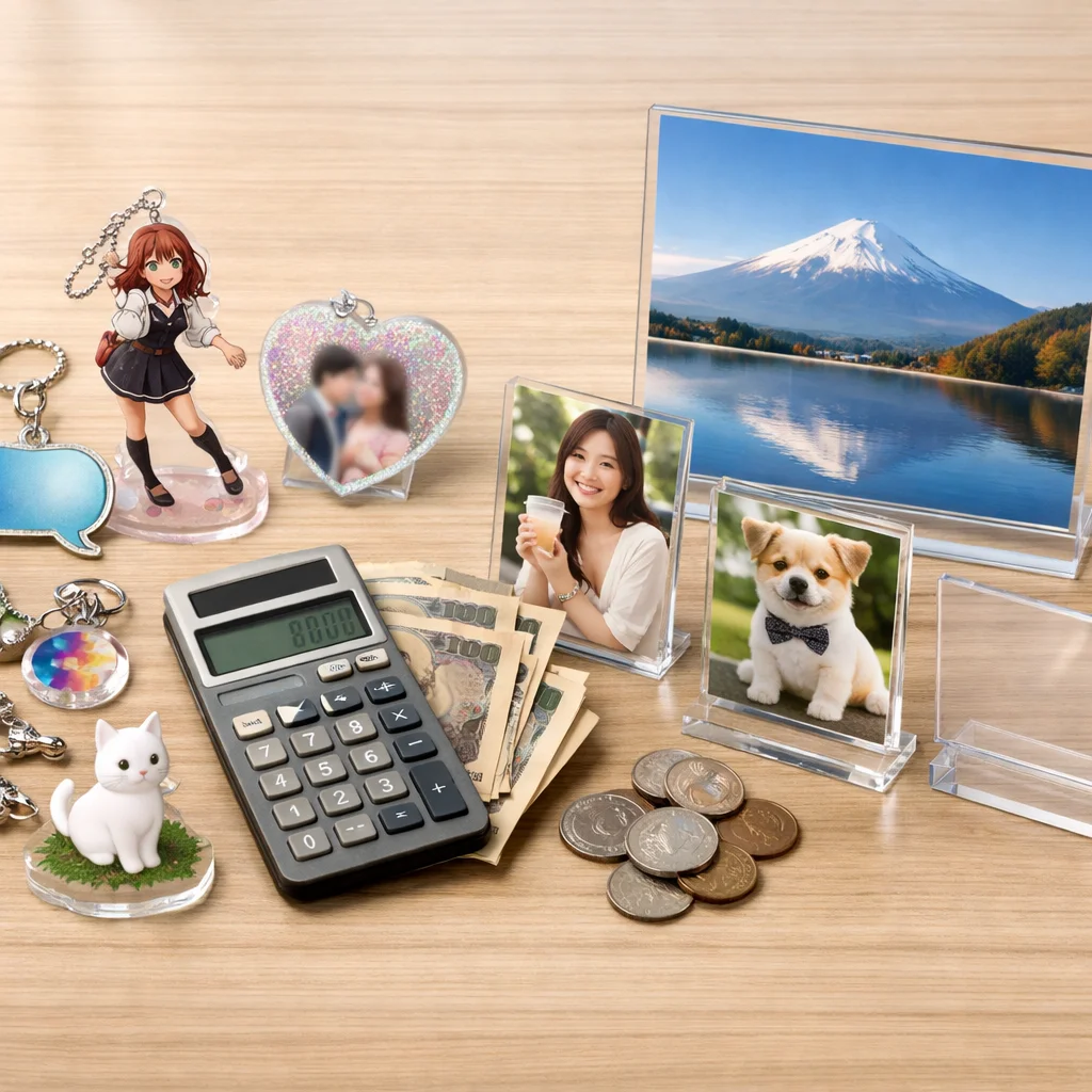 それぞれのアクリルグッズにかかる基本的な費用相場を見ていきましょう。