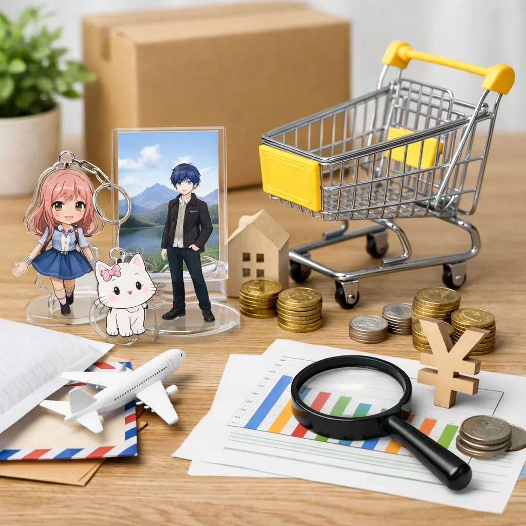 アクリルグッズを購入する際は、本体価格だけでなく送料も含めて総額を比較しましょう。サイズや重量、梱包方法、地域などが送料に影響します。納期、追跡、補償、割れ対策も考慮し、賢い選択をすることが大切です。