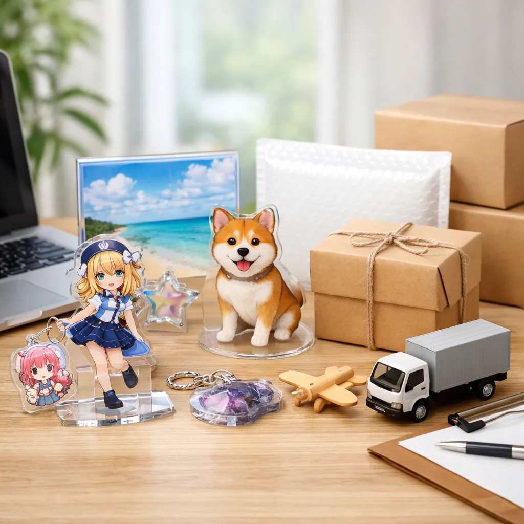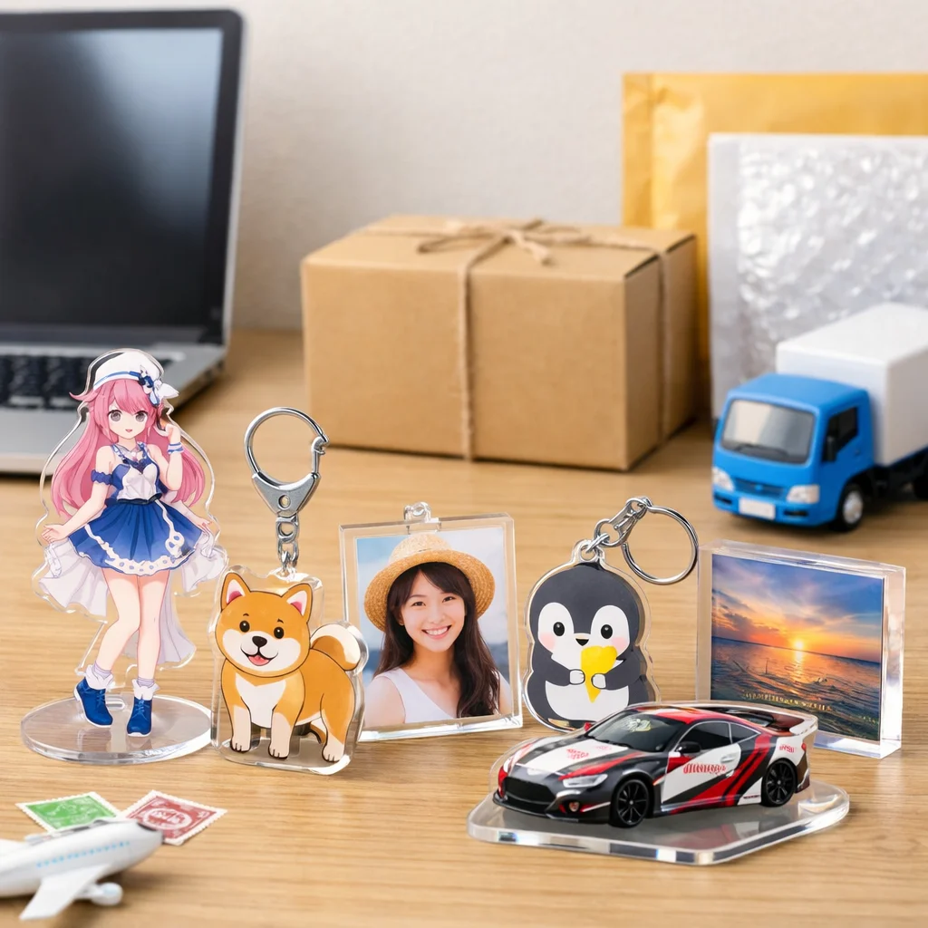 アクリルグッズの通販では、商品の魅力だけでなく、送料にもしっかり目を向ける必要があります。今回は、アクリルグッズの種類別に送料の違いについて詳しく解説します。特に、キーホルダー、スタンド、その他のアクリルグッズに分けて、送料が変わる理由をサイズ、厚み、割れ対策梱包、同梱しやすさの観点から考察していきます。