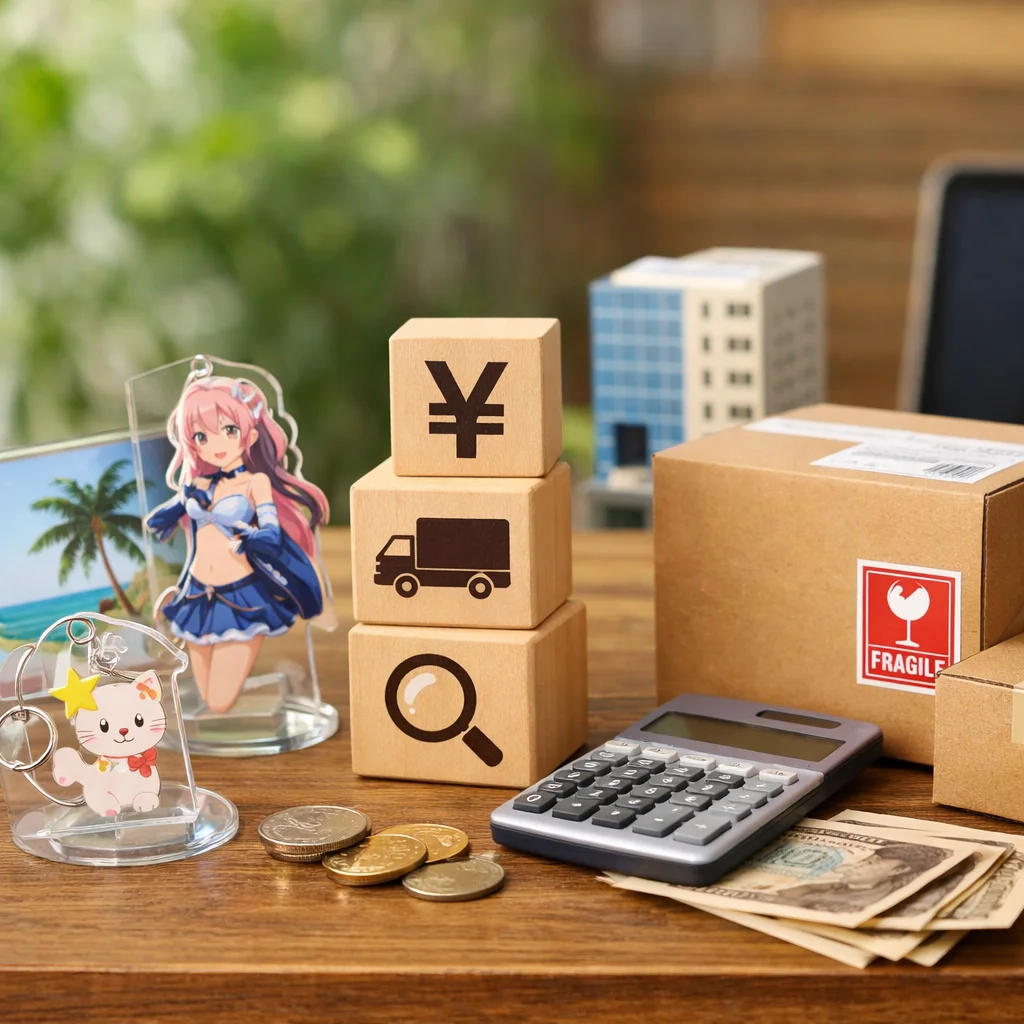 これらの要因を総合的に考慮することで、アクリルグッズの価格をより正確に理解し、適切な業者を選ぶ際の判断材料を得ることができます。適切に送料を比較し、無駄な出費を減らすことが、全体的なコスト削減につながります。アクリルグッズの購入前に、これらの要因を十分に考慮することが重要です。