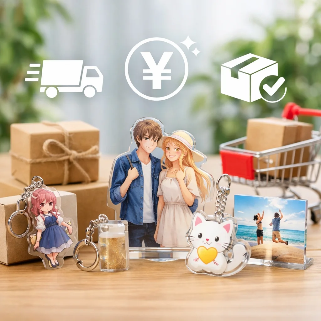 このように、オンラインレビューを活用し、送料を含む総費用を比較することで、アクリルグッズをお得に購入することができます。しっかりとした比較を行い、満足のいくショッピングを楽しんでください。
