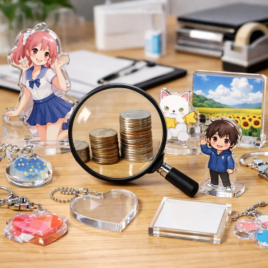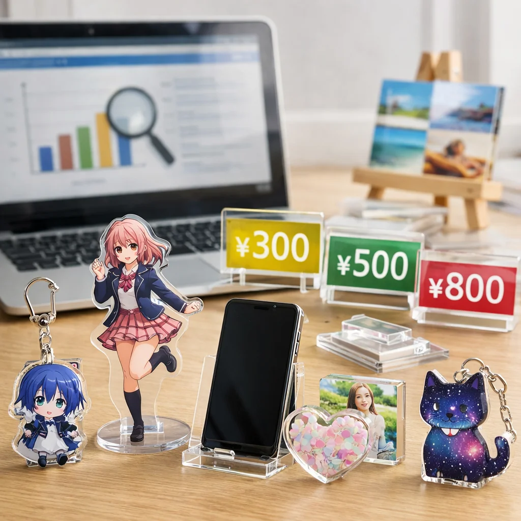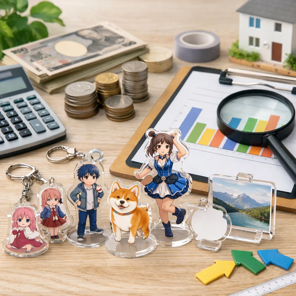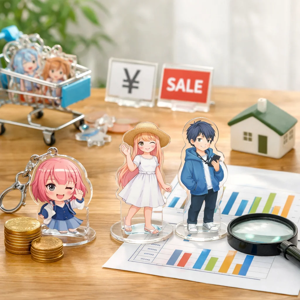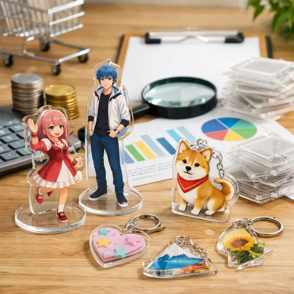 アクリルグッズ安い価格で得たい場合、そのためには多くの業者比較し、以上のようなポイントを確認して、自分に合った最適な業者を見つけることが重要です。安さだけに目を奪われず、質やサービスも併せて比較し、納得のいく選択をしましょう。