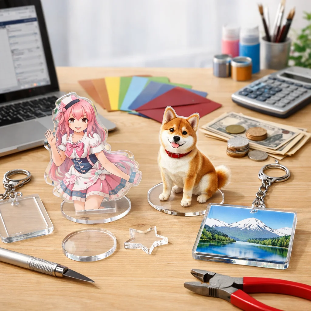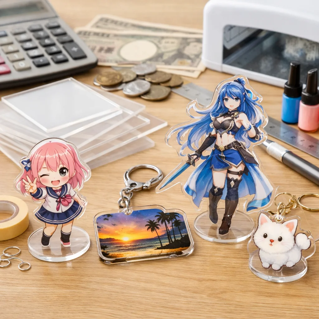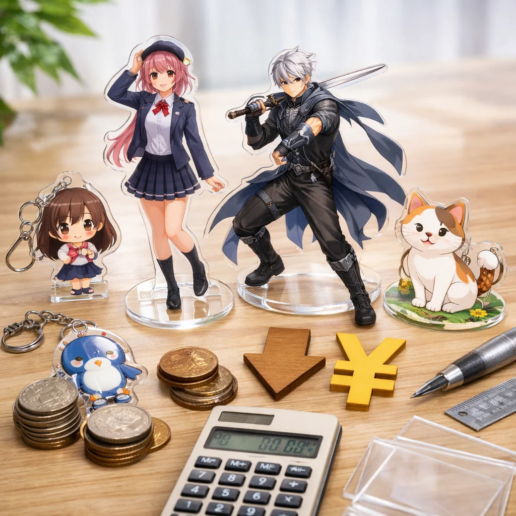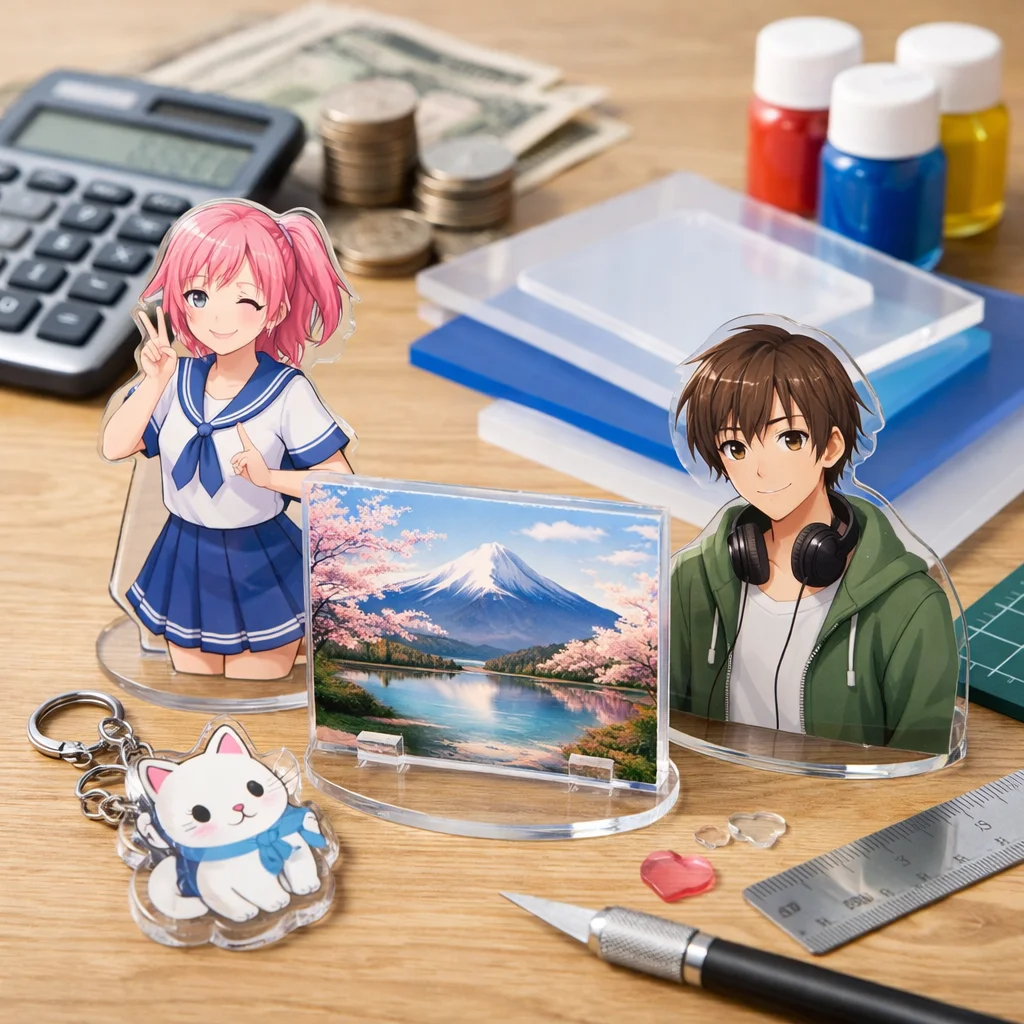 アクリルグッズの制作においては、サイズや厚み、印刷方法によってコストが大きく変わることがあります。また、業者ごとの価格や品質を比較検討することも重要です。少量注文やデザインの自作を利用することで、費用を抑える工夫が必要です。