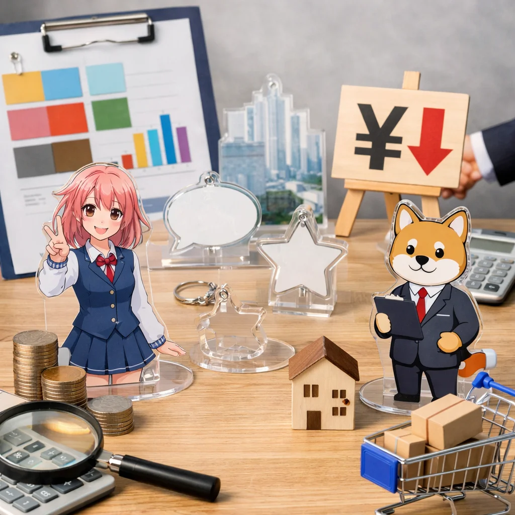 アクリルグッズを制作する際、特に同人や企業ノベルティ、個人購入を考えている方にとって、最安値を見つけることは非常に重要です。最安値が決まる要因はいくつかあり、これを理解することでよりコストパフォーマンスの高いアクリルグッズを手に入れることができます。