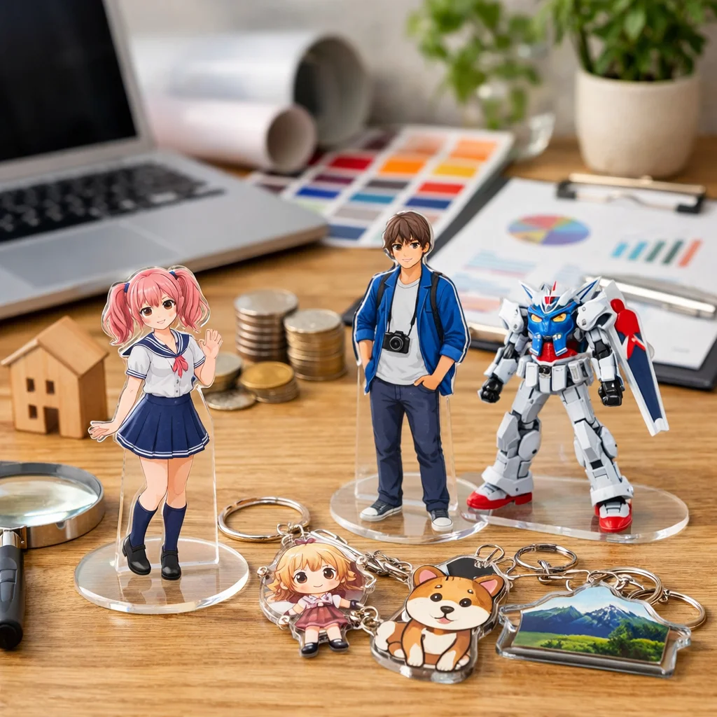 - サイズ: アクリルグッズの大きさによってコストが大きく変わります。小さいサイズは通常安価ですが、デザインによっては大きさが必要になることもあります。