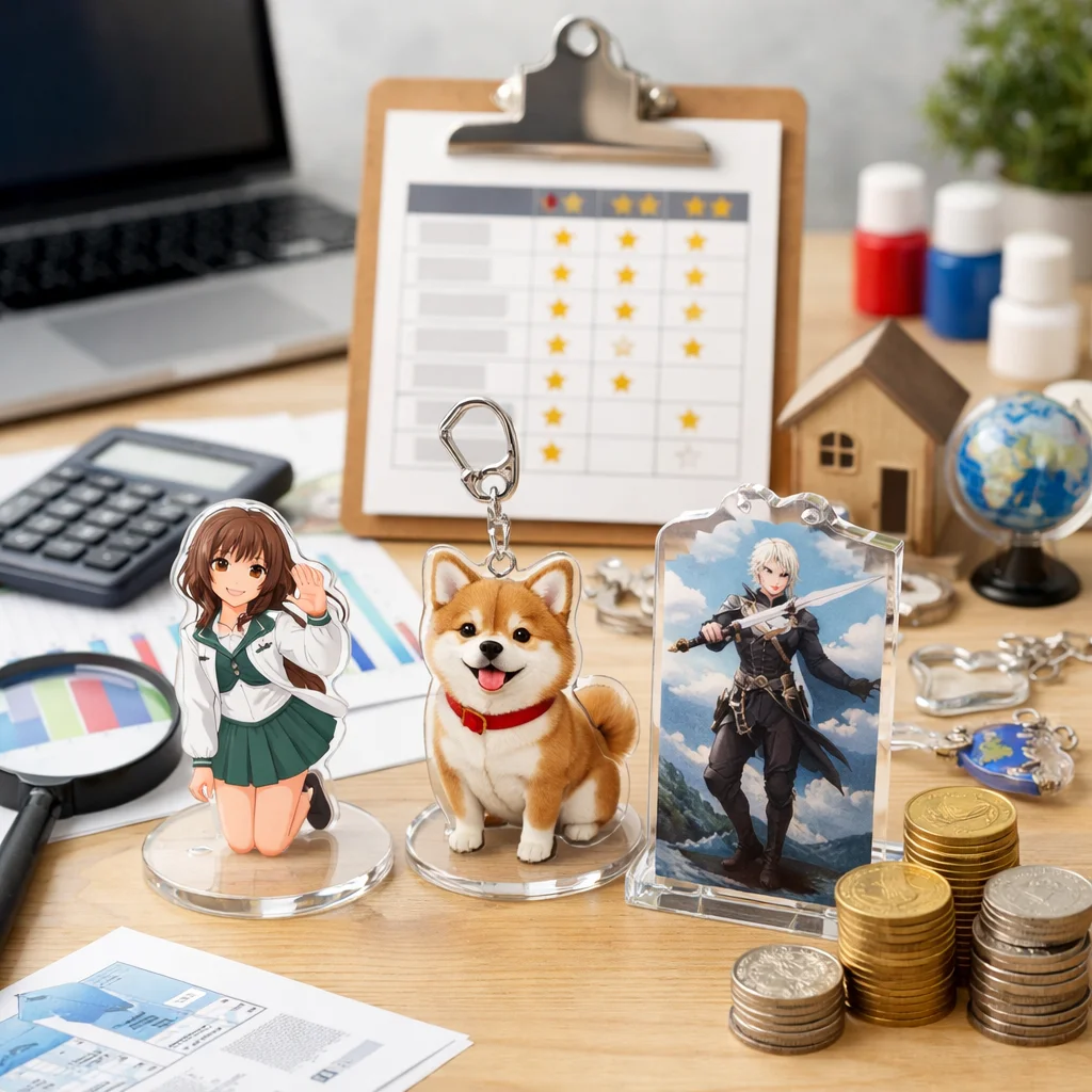 アクリルグッズを製作する際、コスト面だけでなく、さまざまな要素をしっかりと比較することが重要です。「最安値」を追い求めて業者を選ぶ際、時には失敗につながることもあります。そこで、アクリルグッズを製作する業者を選ぶ際に注目すべきポイントを、価格以外の軸からも考察してみましょう。