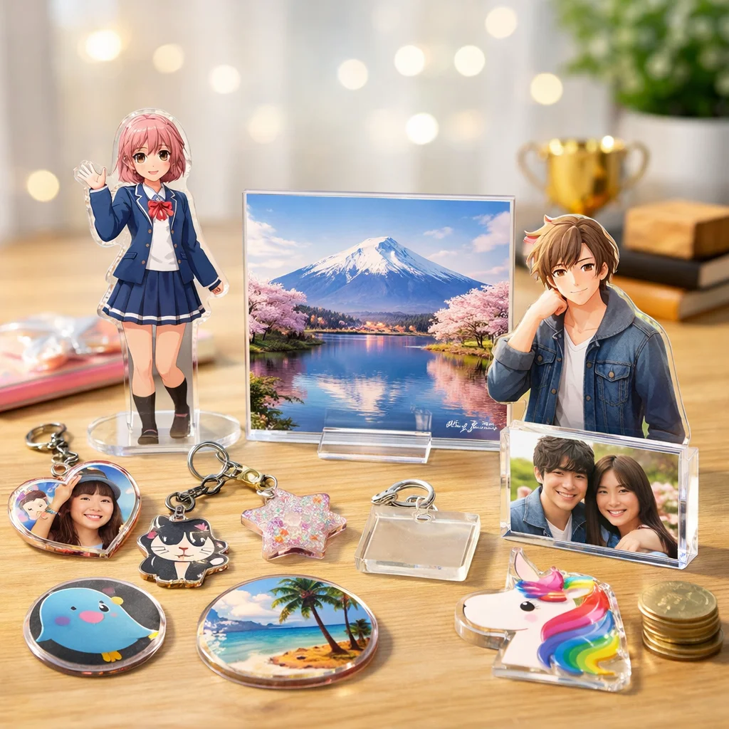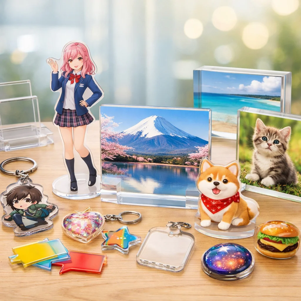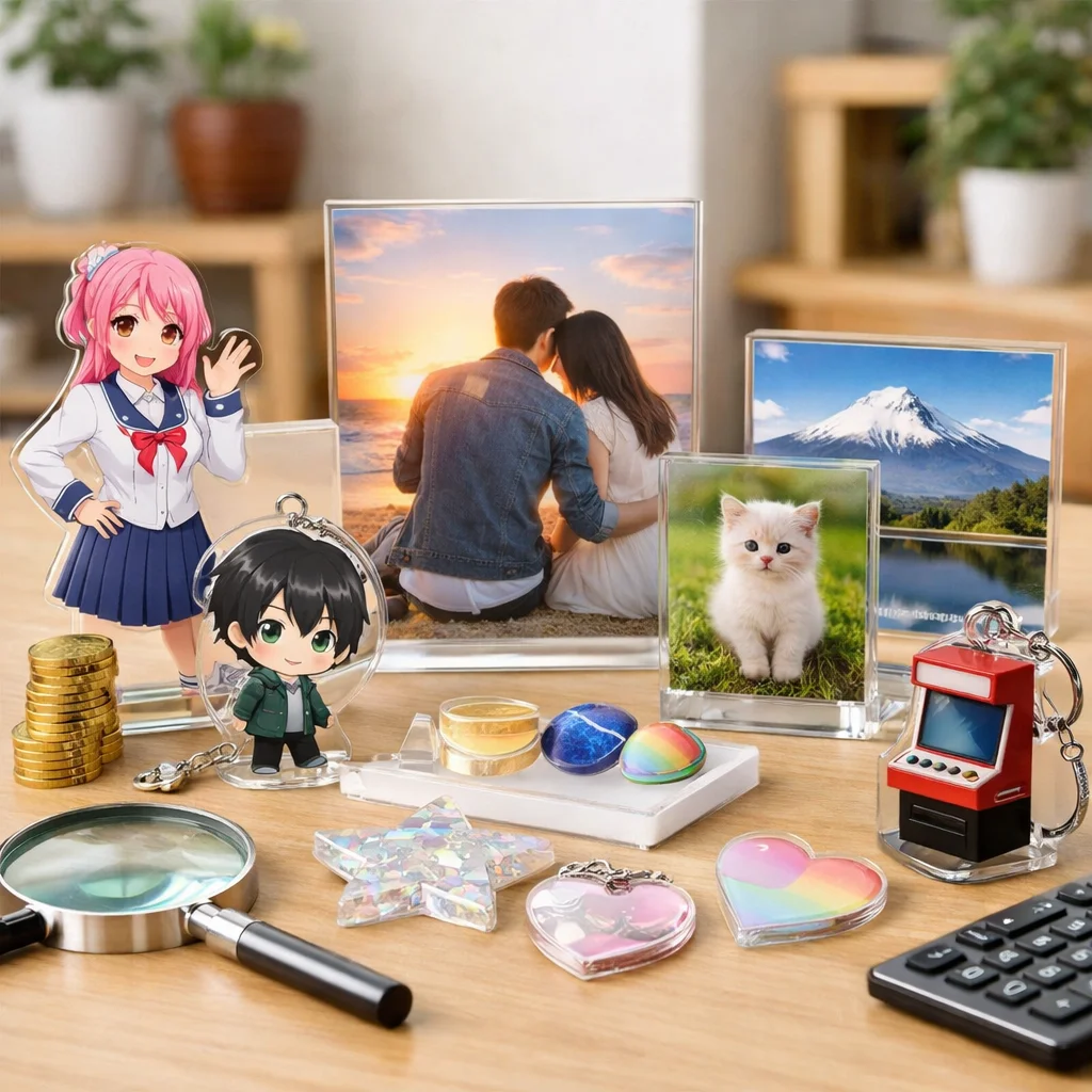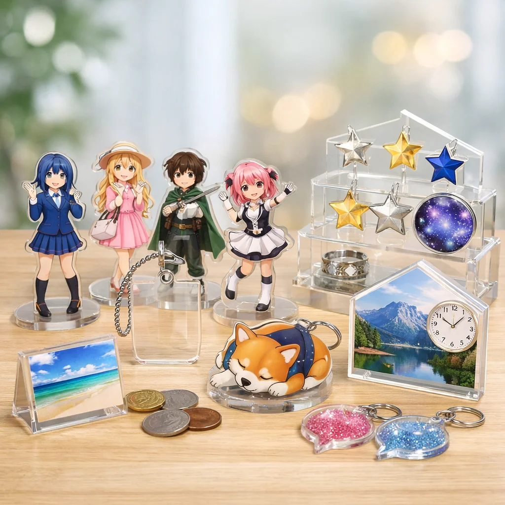 アクリルグッズは、その透明感や発色の美しさ、耐久性、軽さなどから、様々な場面で幅広く愛されています。特に、格安アクリルグッズは、個人で使用するだけでなく、プレゼントやイベント品としても人気があります。この章では、アクリルグッズの魅力、代表的な商品の種類、そして格安商品が本当に安全かどうかを理解していただければと思います。
