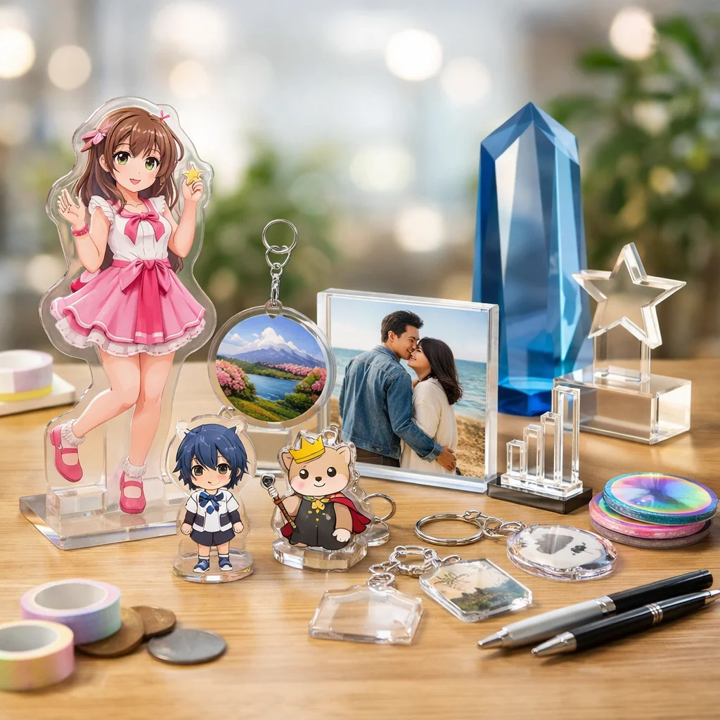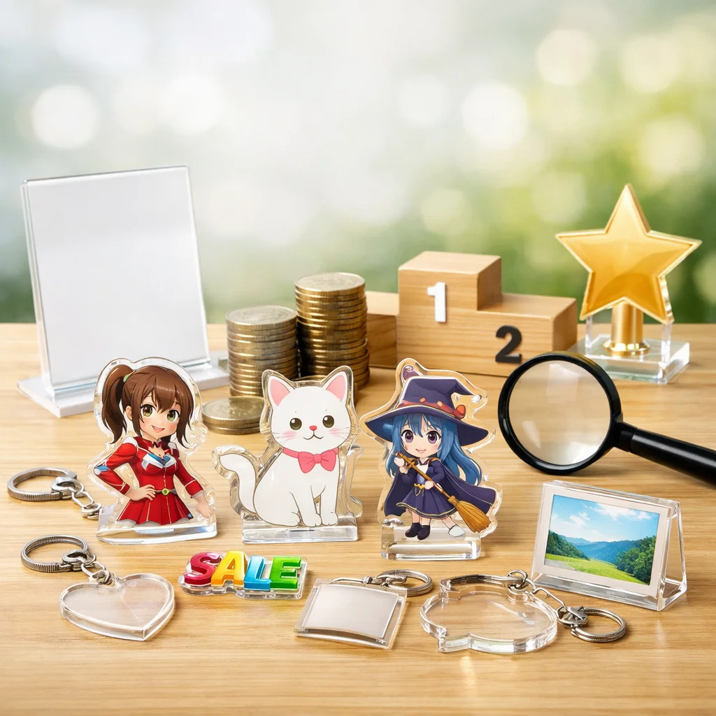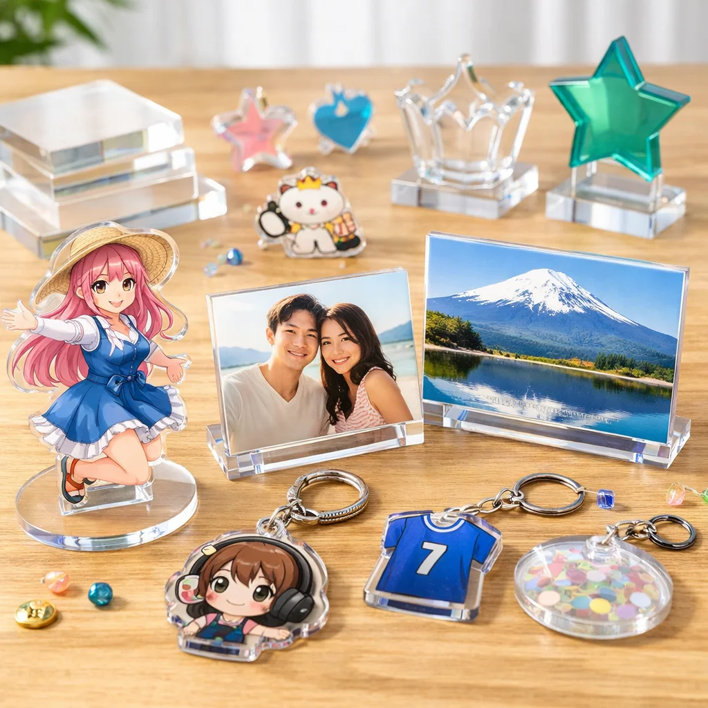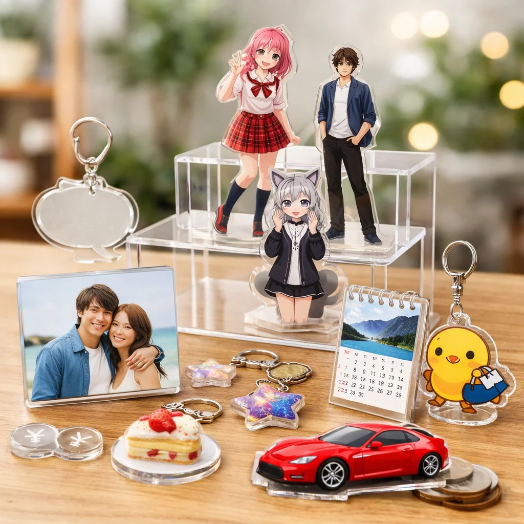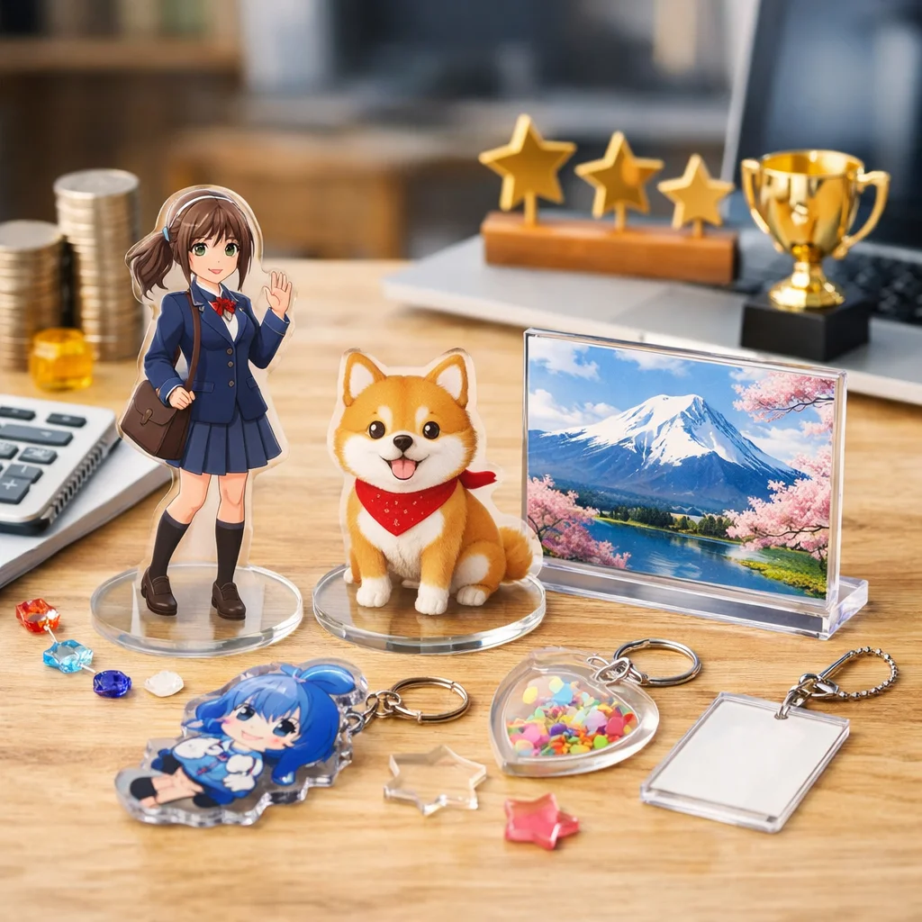 アクリルグッズは、その透明感や発色の美しさ、耐久性、軽さなどから、様々な場面で幅広く愛されています。特に、格安アクリルグッズは、個人で使用するだけでなく、プレゼントやイベント品としても人気があります。この章では、アクリルグッズの魅力、代表的な商品の種類、そして格安商品が本当に安全かどうかを理解していただければと思います。