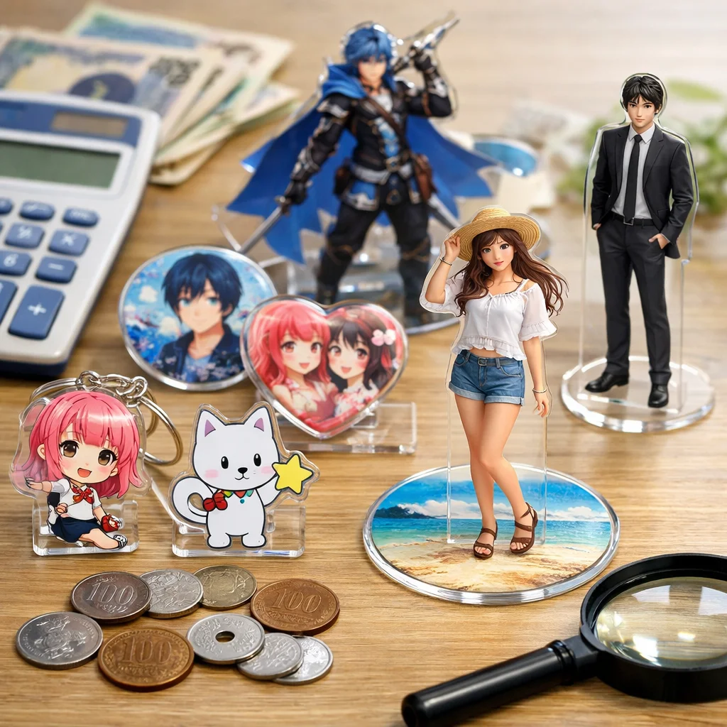 アクリルグッズを選ぶ際は、厚み、印刷、カット、金具、梱包をチェックすることで、質の良い格安商品を見つけやすくなります。