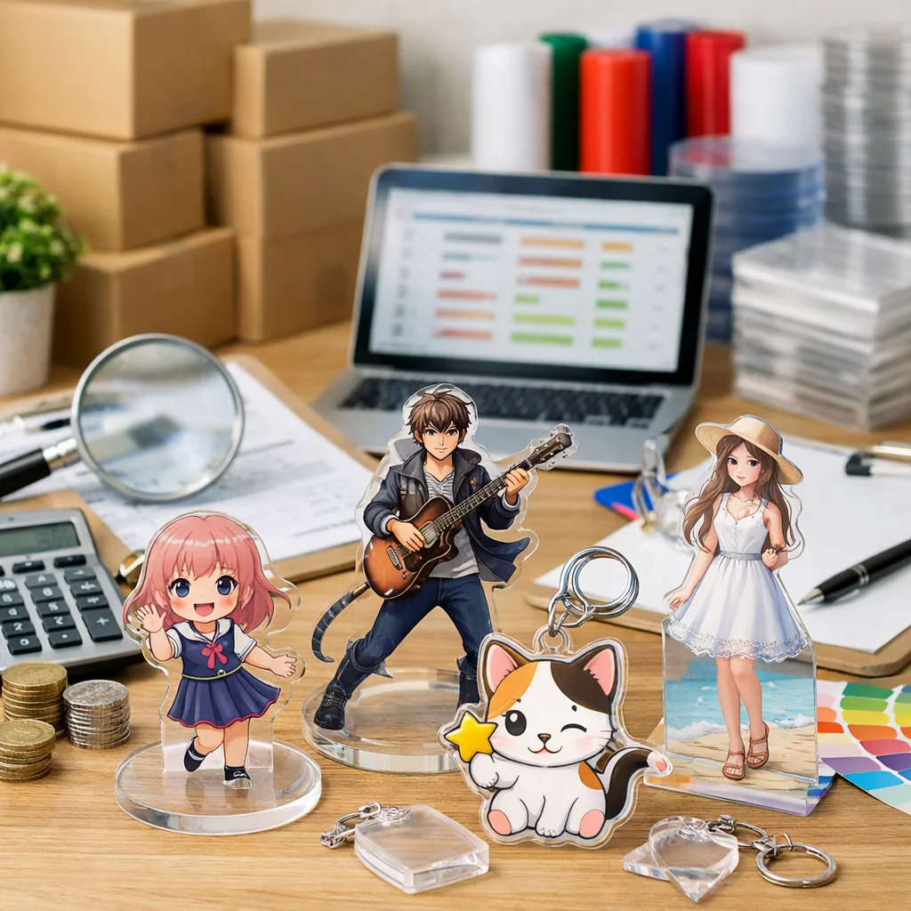 アクリルグッズを格安で制作する際、価格だけでなく印刷品質やカット精度、検品基準などのサービス面も重要です。業者を慎重に比較し、高品質を維持しつつコストを抑えましょう。