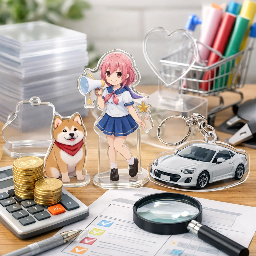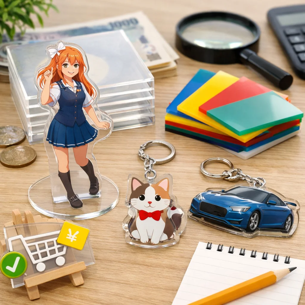 激安=総額最適化であることを理解することが、アクリルグッズ制作において非常に重要です。送料や校正費、再制作リスクを考慮することにより、実際のコストを精確に把握した上で、制作を進めることをお勧めします。