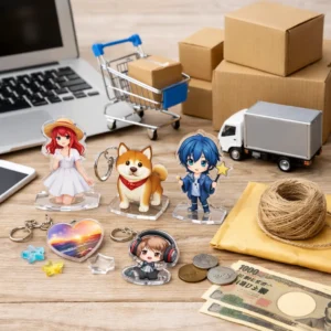 アクリルグッズの発送時には、商品のサイズや重量、そして特に割れ物であることを考慮し、適切な配送業者とサービスを選択することが重要です。補償内容や取扱いの丁寧さ、発送のしやすさを総合的に判断し、最適な配送方法を選ぶことで、アクリルグッズの安全な到着と送料の計算における目安を適切に設定することができます。