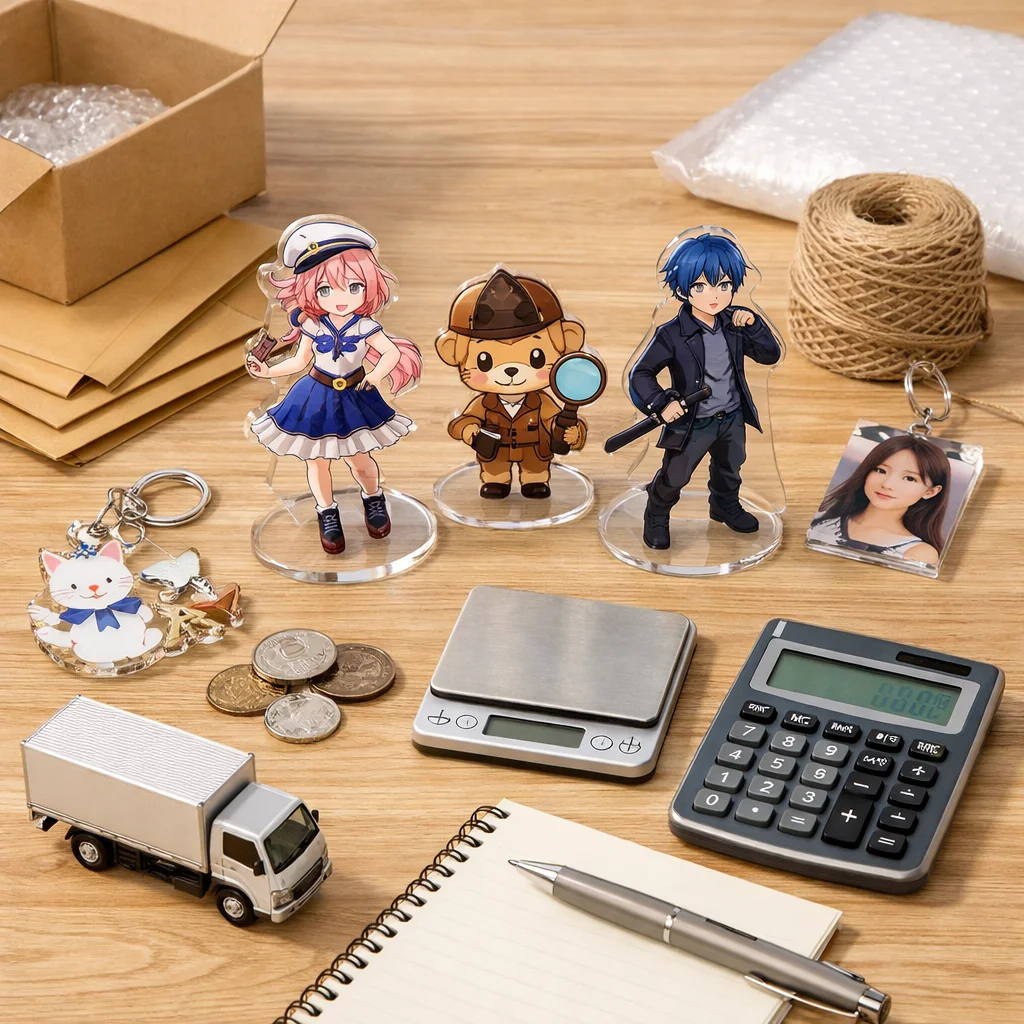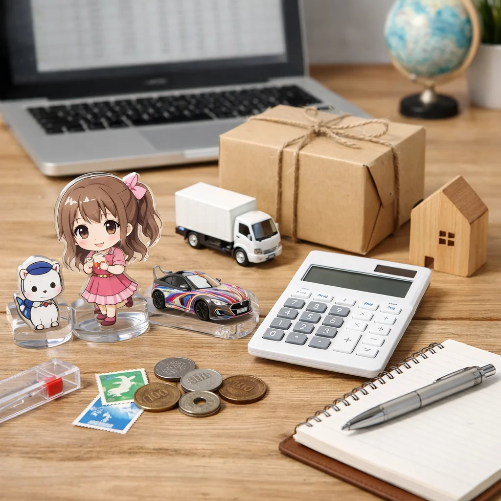 このように、アクリルグッズにおける送料計算には、細かな配慮が必要です。送料の設定一つでビジネスの成果が大きく変わるため、正確な情報に基づく戦略を立てることが重要です。正確な送料計算を通じて、顧客との信頼関係を築き、持続可能なビジネスを目指しましょう。