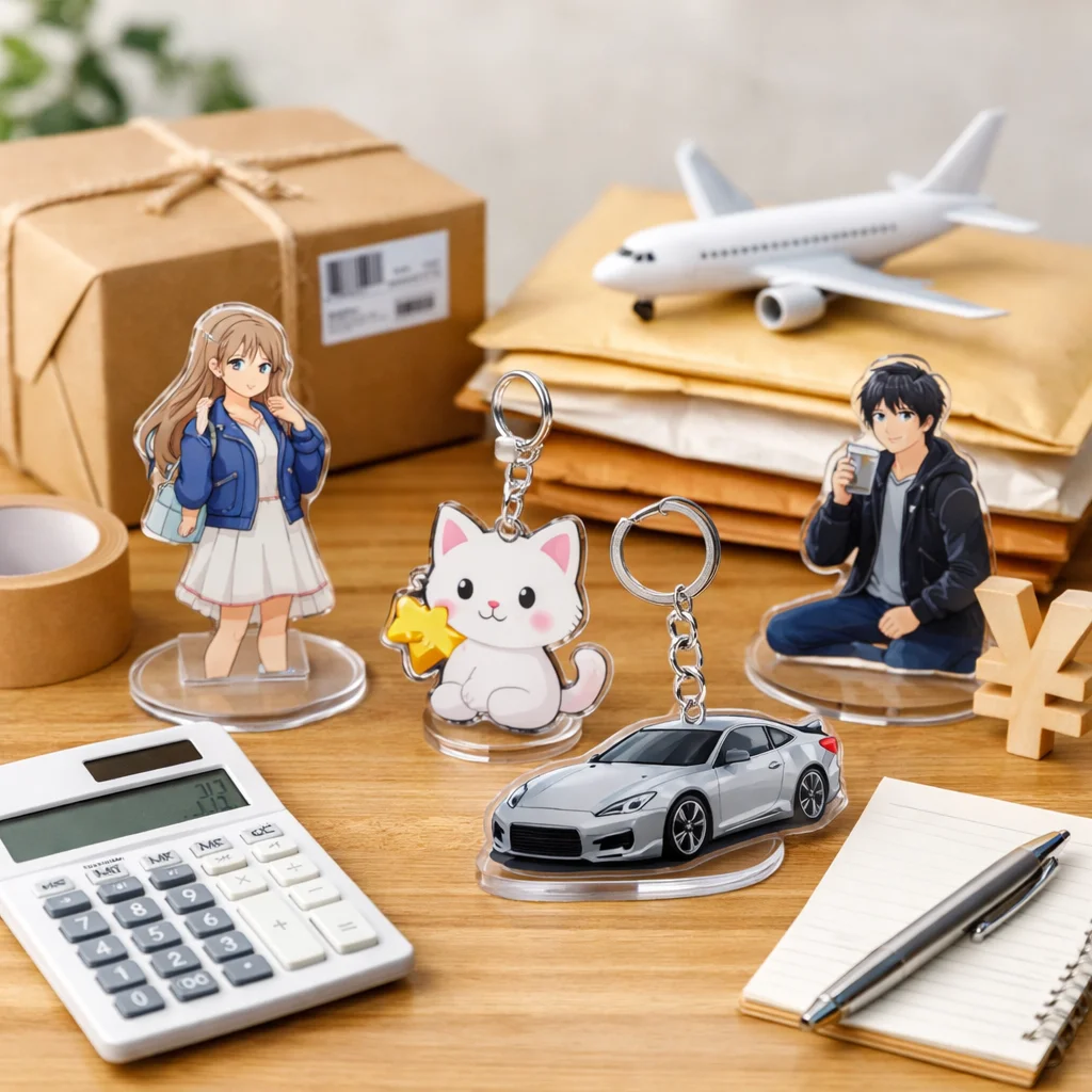 加えて、送料の計算は、発送するアクリルグッズのサイズや重量が鍵となります。前述の通り、アクリルキーホルダーやアクリルスタンドなど、各商品の寸法や梱包の重さにより送料は変動します。特に、特急便や冷蔵配送、夜間配送の場合には、そのコストが高まる傾向があるため、必ず見積もりを行い、実際の発送方法を検討しましょう。